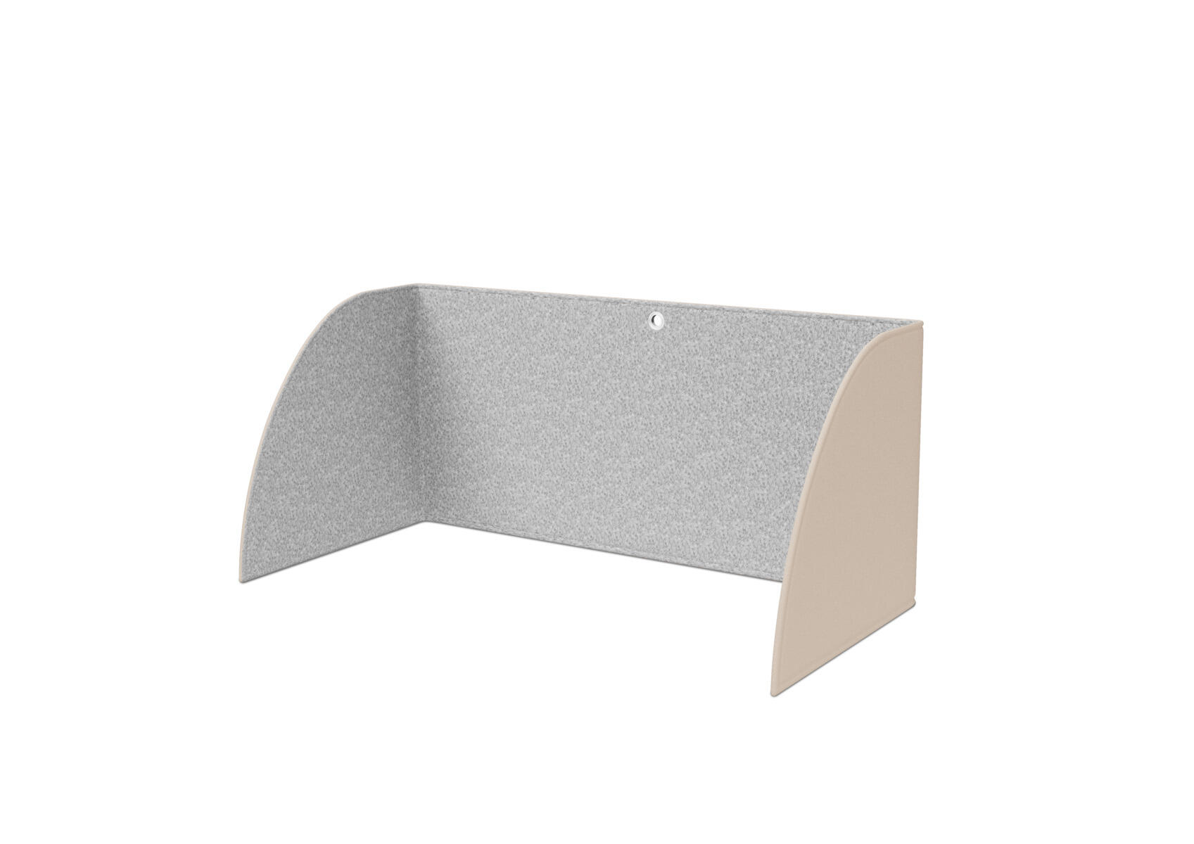 Ääntä vaimentava pöytäsermi, jolla voi luoda oman hiljaisen tilan. Sermi taittuu kahdesta kohdasta ja sen voi ripustaa seinälle käytön jälkeen. Mitat 50x50x35 cm. Sermi on valmistettu synteettihuovasta, josta 50 % on kierrätettyä. 100 % kierrätettävä. Tarrakiinnitys.
