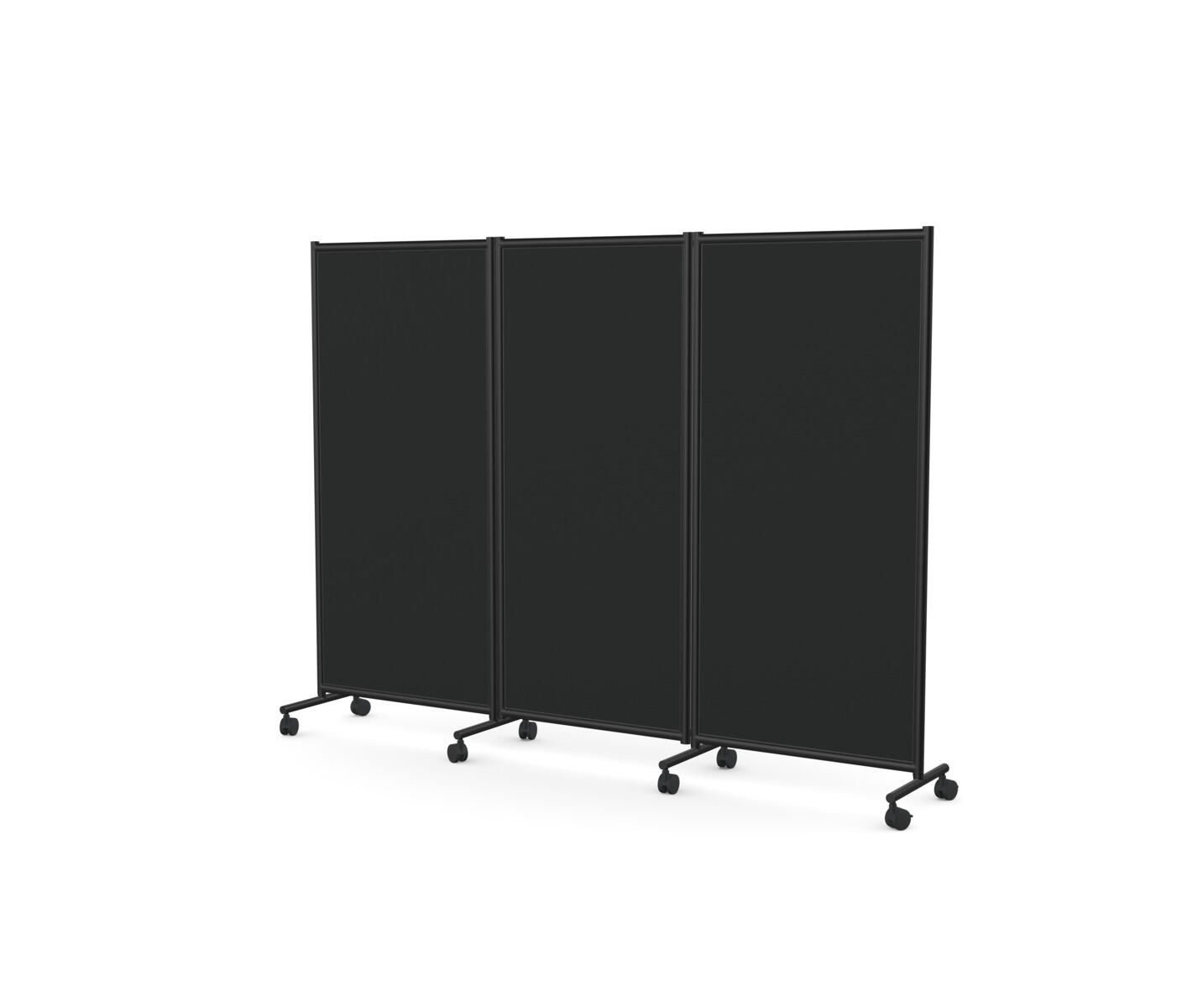 Kangasverhoiltu, siirreltävä seinäke, johon voi kiinnittää papereita neuloilla ja nastoilla. Sermissä on tyylikäs musta kehys ja se toimii myös tilanjakajana. Lukittavat pyörät.