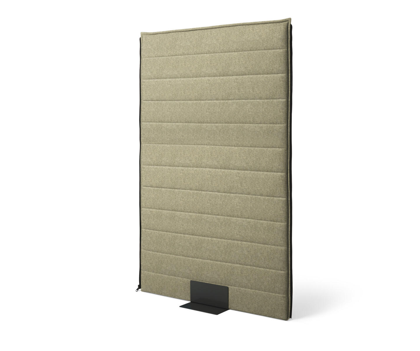 Tyylikäs, ääntä vaimentava sermi, jonka voi helposti yhdistää vetoketjulla toiseen sermiin. Seinäkkeet voidaan asetella eri kulmiin akustiikan ja tilanjakamisen tarpeisiin. Matala, siro metallijalka.