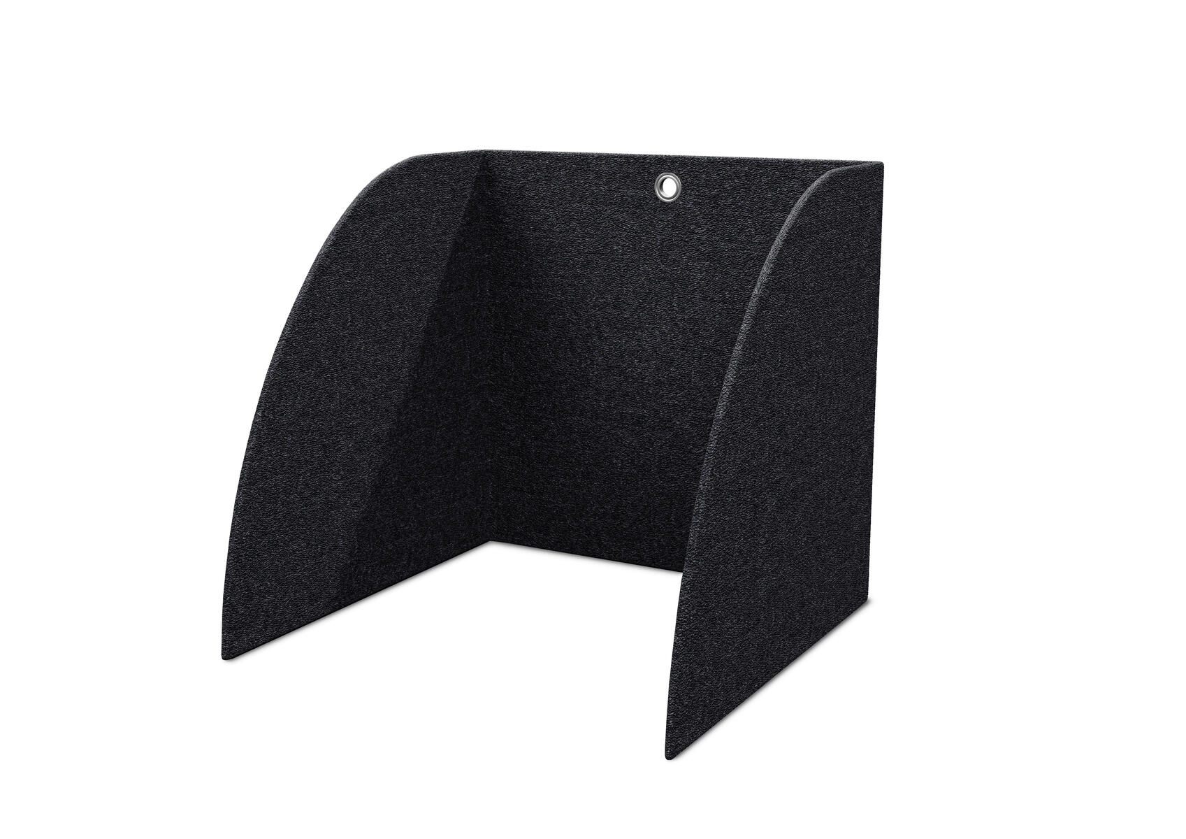 Ääntä vaimentava pöytäsermi, jolla voi luoda oman hiljaisen tilan. Sermi taittuu kahdesta kohdasta ja sen voi ripustaa seinälle käytön jälkeen. Mitat 50x50x50 cm. Sermi on valmistettu synteettihuovasta, josta 50 % on kierrätettyä. 100 % kierrätettävä. Tarrakiinnitys.
