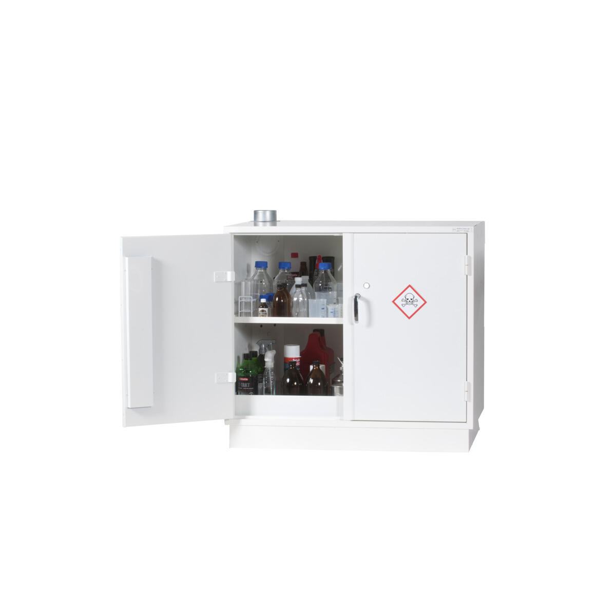 F30 paloluokiteltu kemikaalikaappi helposti syttyvien ja myrkyllisten kemikaalien säilytykseen. Kaappi toimitetaan valmiiksi asennetulla kahvalukolla ja kahdella avaimella. Pohjassa valuma-allas, jossa on rei’itetty pohjalevy. Valuma-altaan tilavuus 41 l. Hyllyn kantavuus 50 kg tasaisesti kuormitettuna. Kaapissa on katossa ilmanvaihtoliitäntä (Ø100 mm) tuloilmaa ja poistoilmaan liittämistä varten. Sisämitat: L 101,1 x S 49,1 x K 36,6 cm. Itsesulkeutuva ovi on normaalisti pidettävissä auki, mutta sulkeutuu automaattisesti, jos huonelämpötila nousee yli 50 °C. Kaappi on tarkoitettu suurempien määrien palavien nesteiden (leimahduspiste 30 °C tai alle) säilytykseen palo-osastossa tai herkissä tiloissa. Testattu standardien EN 16121:2013 ja EN 14470-1 mukaisesti.
