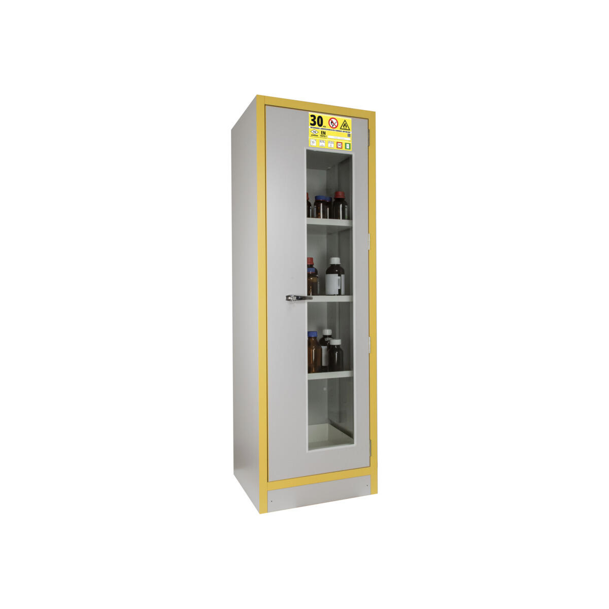 Kemikaalikaappi, paloluokka F30, lasiovi, 60,5x55x198 cm