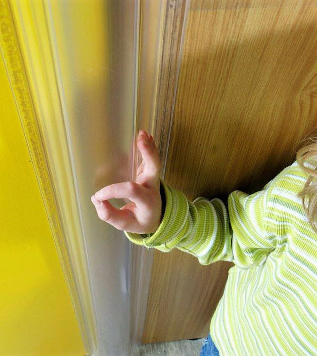 Läpinäkyvä sormisuojus, joka sopii kovaan käyttöön päiväkodeissa ja julkisissa tiloissa. Suunniteltu oville, joiden avautumiskulma on enintään 110° ja oven paksuus enintään 50 mm. Huomaamaton mutta tehokas suoja, joka ehkäisee sormien jäämistä oven väliin. Sormisuojus koostuu kahdesta osasta: leveä lista oven sisäpuolelle ja kapeampi lista saranapuolelle. Kiinnitys onnistuu helposti mukana tulevalla vahvalla kaksipuolisella teipillä. Testattu ja hyväksytty standardin EN 16654:2015 mukaisesti.