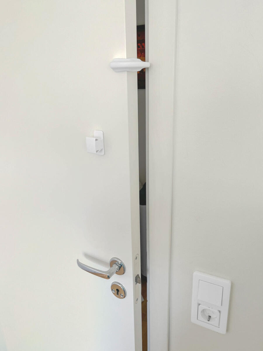 Käytännöllinen sormisuojus, joka estää lapsen sormien jäämisen oven etureunaan ja samalla ehkäisee oven sulkeutumisen kokonaan. Kun sormisuojus on paikallaan, ovi ei mene kiinni, joten lapsi ei voi lukita itseään huoneeseen. Helppo asentaa ja irrottaa ilman jälkiä oveen. Turvallinen ja huoleton ratkaisu vilkkaaseen arkeen.