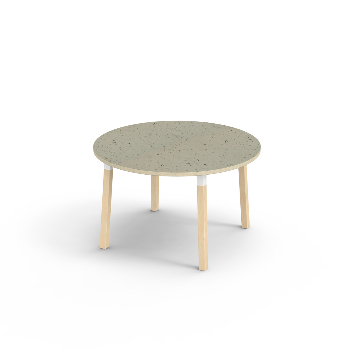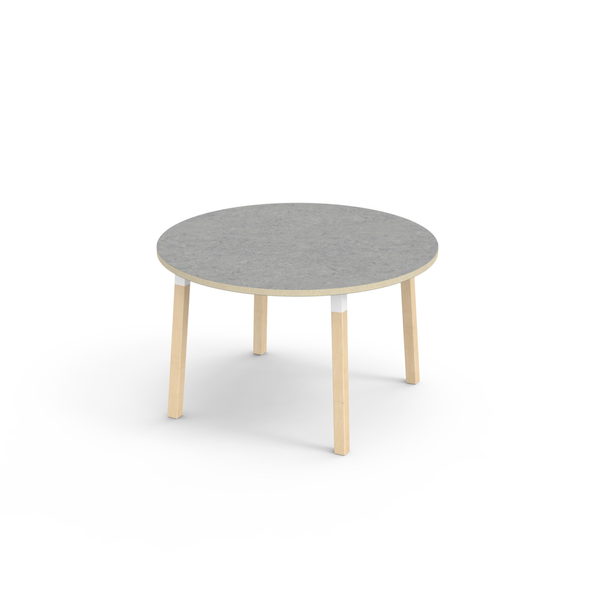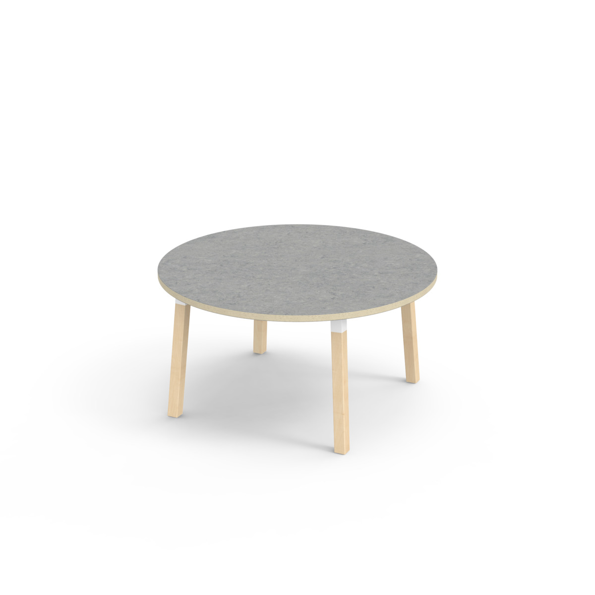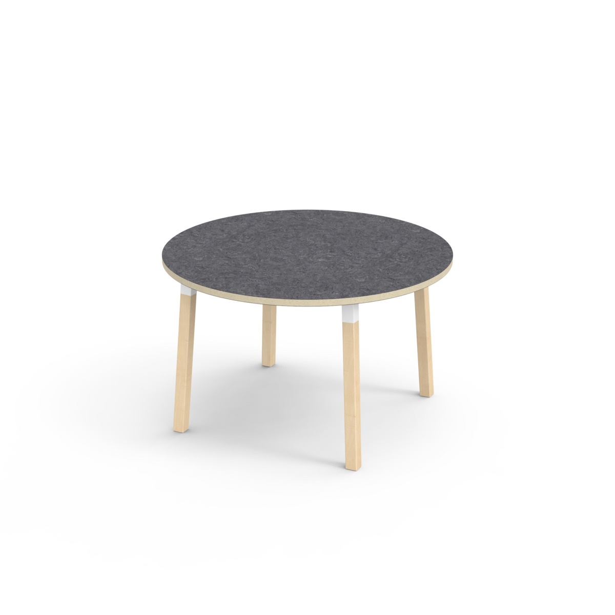 Pöydän kannessa on ääntä vaimentava rakenne ja kestävä korkeapainelaminaattipinta. Pöydän kannen kulmissa on 40 mm pyöristys, jonka ansiosta pöytä saa modernin ja tyylikkään ilmeen. Jalat on valmistettu kirkaslakatusta massiivikoivusta ja kiinnitetty tukevalla metalliholkilla. Jalan kulma on ulkoneva; rakenne takaa sekä vakauden että kestävyyden.