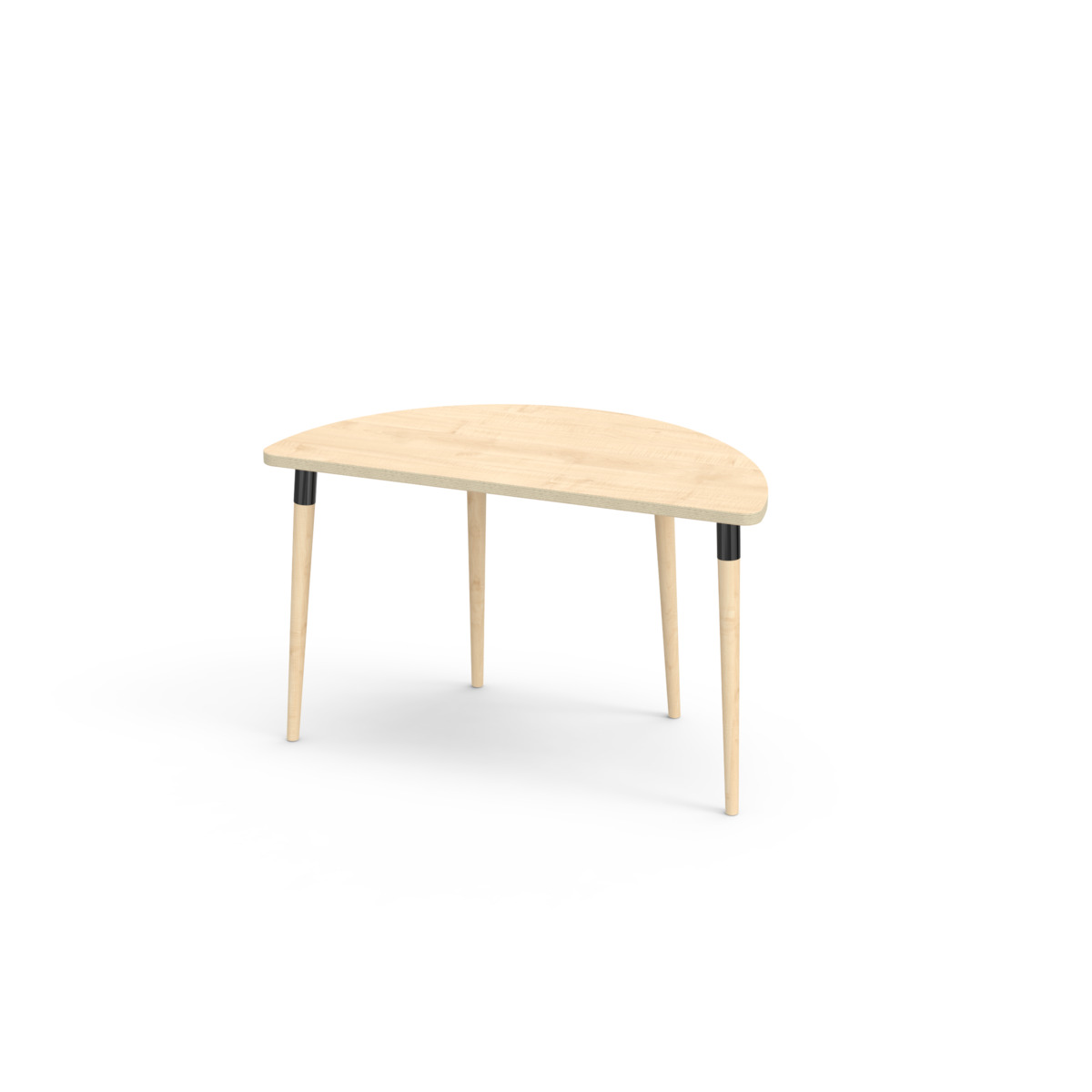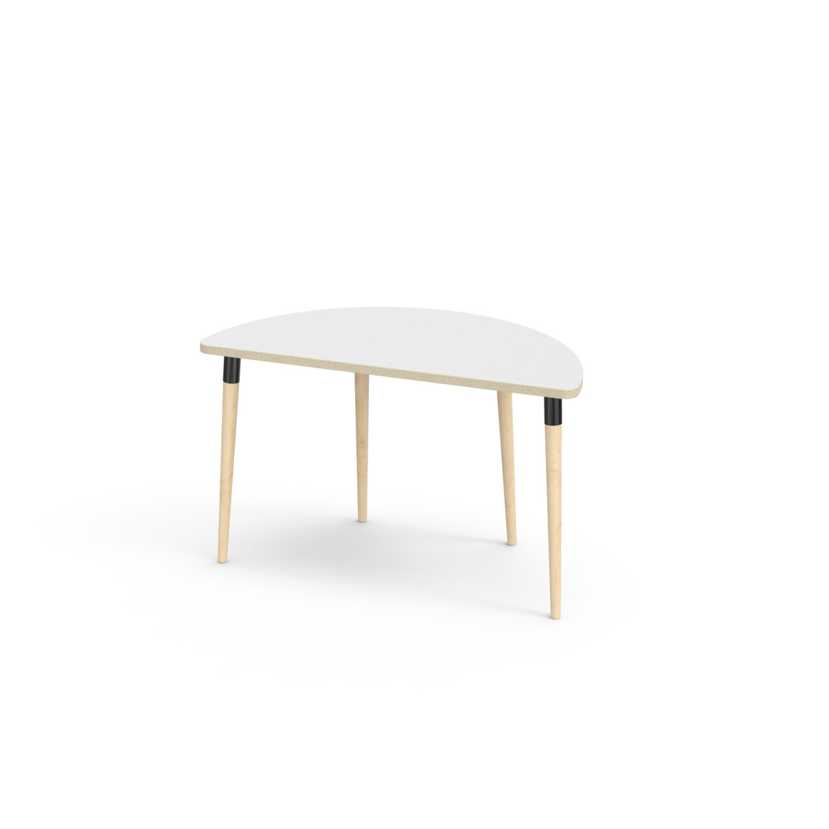 Pöydän kannessa on laminaattipinta. Pöydän kannen kulmissa on 40 mm pyöristys, jonka ansiosta pöytä saa modernin ja tyylikkään ilmeen. Jalat ovat kartiomaiset ja valmistettu kirkaslakatusta massiivikoivusta, ja ne on kiinnitetty tukevalla mustalla metalliholkilla. Jalan kulma on ulkoneva; rakenne takaa sekä vakauden että kestävyyden.