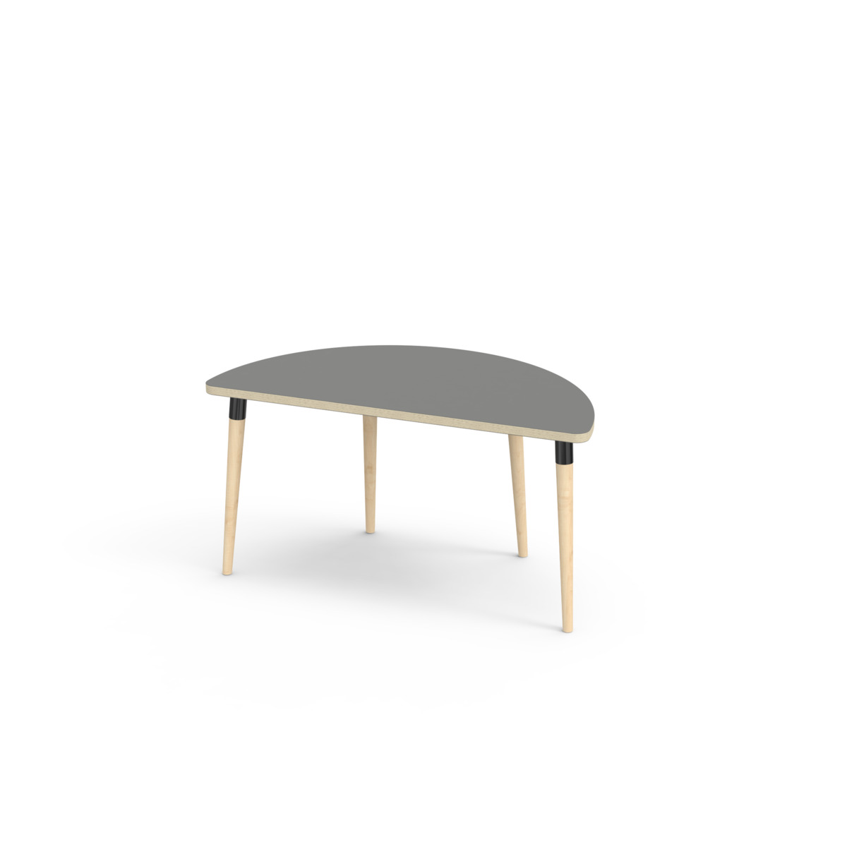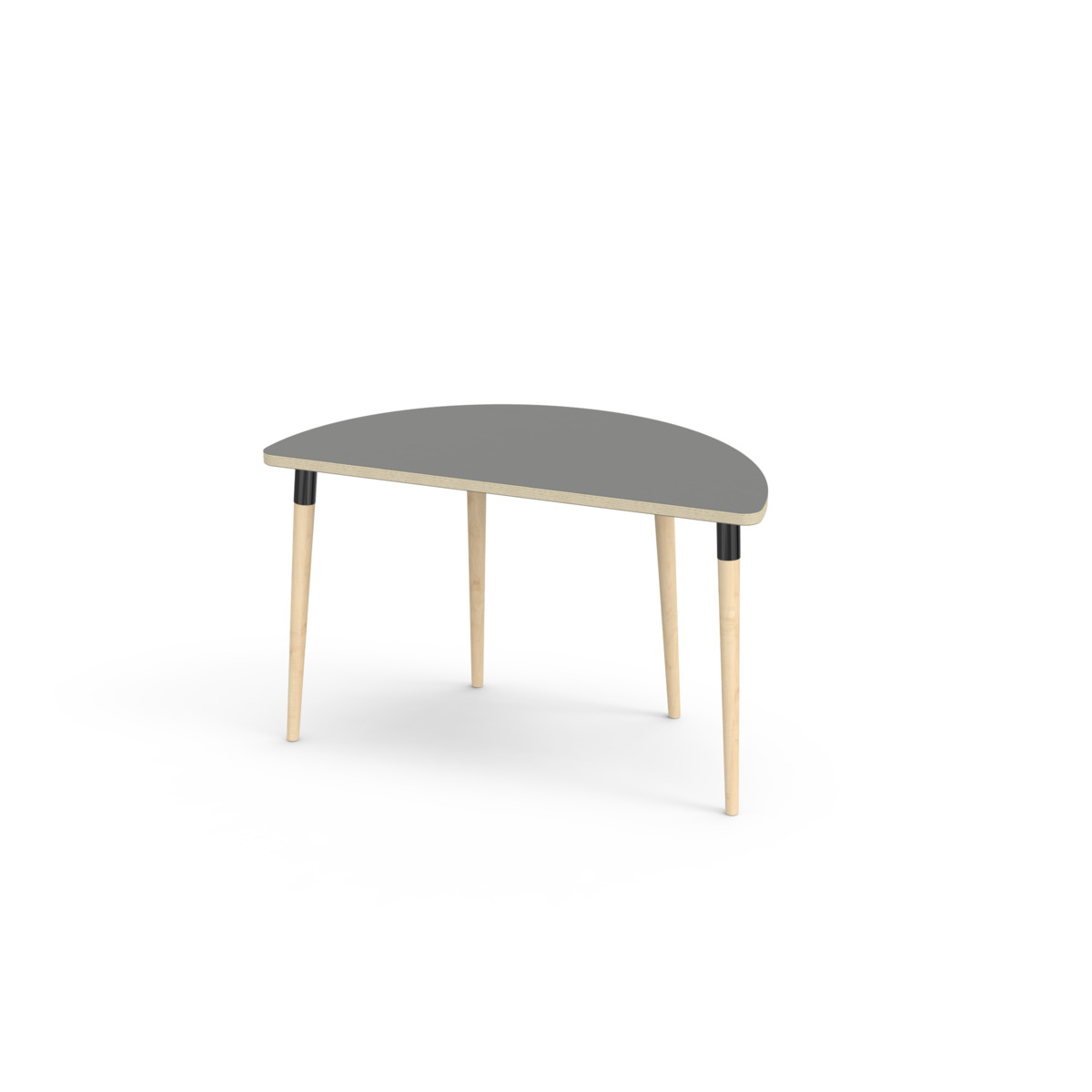 Pöydän kannessa on ääntä vaimentava rakenne ja kestävä korkeapainelaminaattipinta. Pöydän kannen kulmissa on 40 mm pyöristys, jonka ansiosta pöytä saa modernin ja tyylikkään ilmeen. Jalat ovat kartiomaiset ja valmistettu kirkaslakatusta massiivikoivusta, ja ne on kiinnitetty tukevalla mustalla metalliholkilla. Jalan kulma on ulkoneva; rakenne takaa sekä vakauden että kestävyyden.
