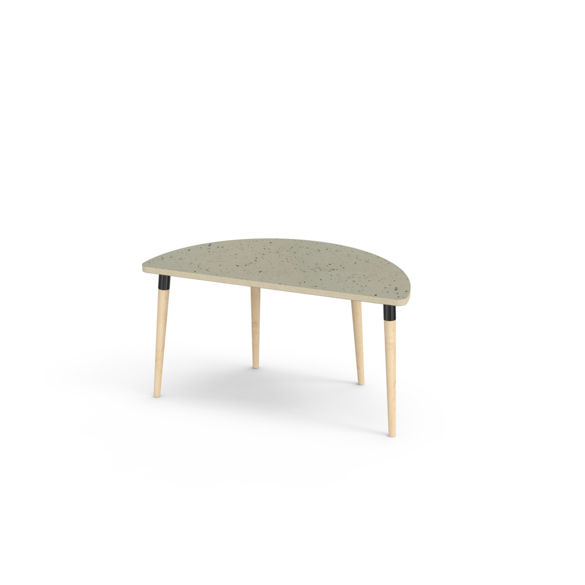 Pöydän kannessa on ääntä vaimentava rakenne ja kestävä korkeapainelaminaattipinta. Pöydän kannen kulmissa on 40 mm pyöristys, jonka ansiosta pöytä saa modernin ja tyylikkään ilmeen. Jalat ovat kartiomaiset ja valmistettu kirkaslakatusta massiivikoivusta, ja ne on kiinnitetty tukevalla mustalla metalliholkilla. Jalan kulma on ulkoneva; rakenne takaa sekä vakauden että kestävyyden.