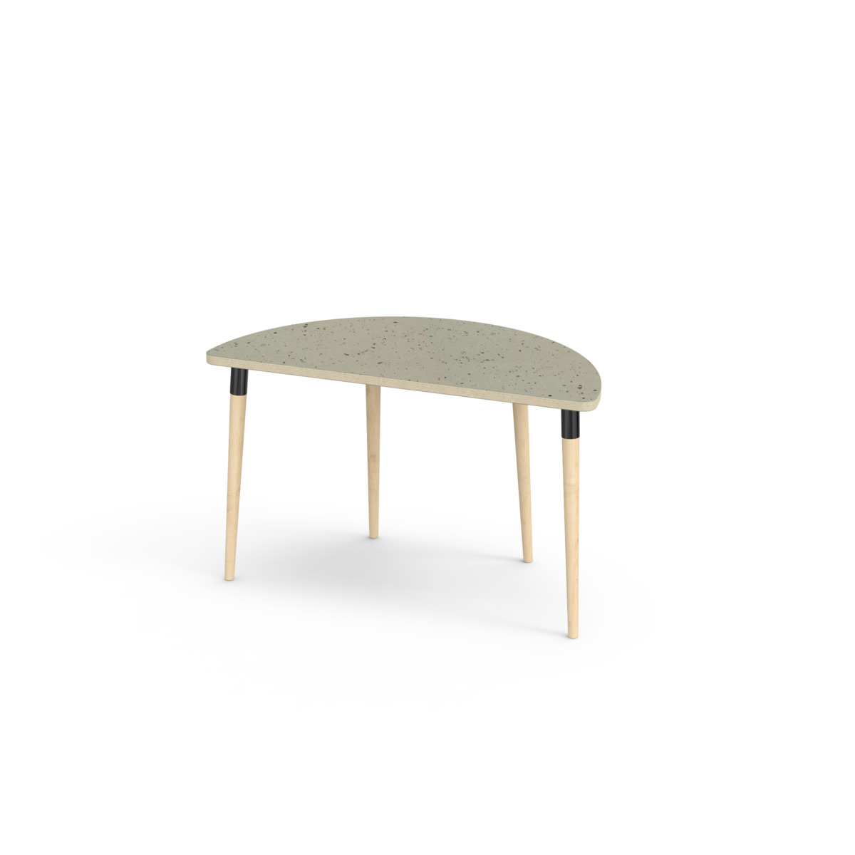 Pöydän kannessa on laminaattipinta. Pöydän kannen kulmissa on 40 mm pyöristys, jonka ansiosta pöytä saa modernin ja tyylikkään ilmeen. Jalat ovat kartiomaiset ja valmistettu kirkaslakatusta massiivikoivusta, ja ne on kiinnitetty tukevalla mustalla metalliholkilla. Jalan kulma on ulkoneva; rakenne takaa sekä vakauden että kestävyyden.