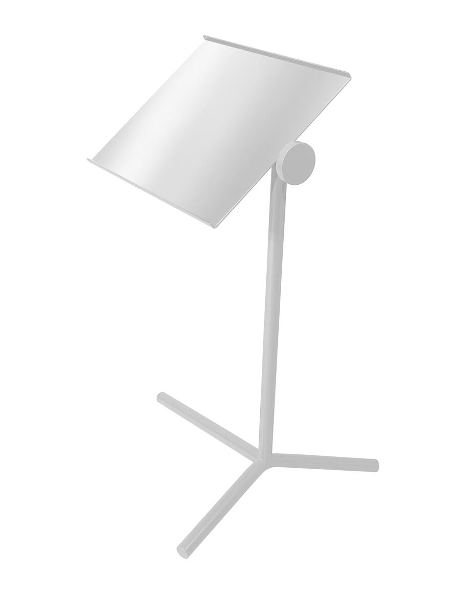 Kätevä, helposti säädettävä pöytä, jota voi käyttää kannettavan tietokoneen kanssa tai kirjan alustana. Pöydän kannen voi säätää haluttuun asentoon. Pulverilakattu teräsputkirunko ø24 mm. Kannen koko 32x40 cm.