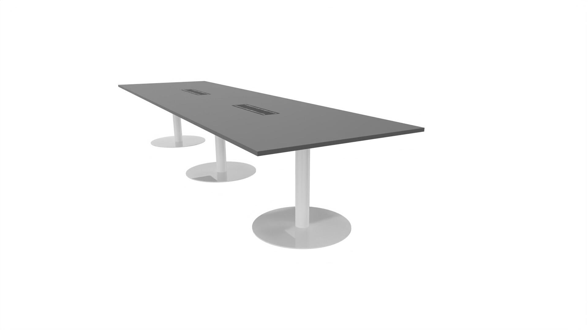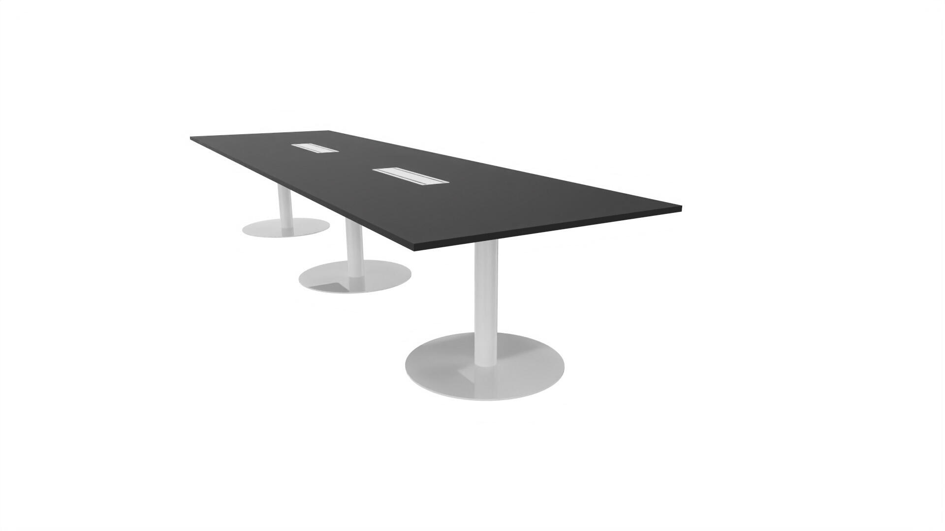 Neuvottelupöytä, jossa ellipsinmuotoinen laminaattipintainen lastulevykansi suorilla reunoilla ja abs-reunalistalla. Pilarijalat, 3 jalkaa, pilarin halkaisija ø 10,2 cm, jalan halkaisija ø 72 cm. Vakiolaminaatin lisäksi saatavilla mattapintainen, erittäin kestävä, musta nanolaminaatti. Lisävalintana saatavana myös kaksi sähköluukkua (61x15 cm) pöydän kanteen upotettuna. Jokaisessa sähköluukussa on 5x230V sähköliitännät, 2xUSB ja 1xHDMI.