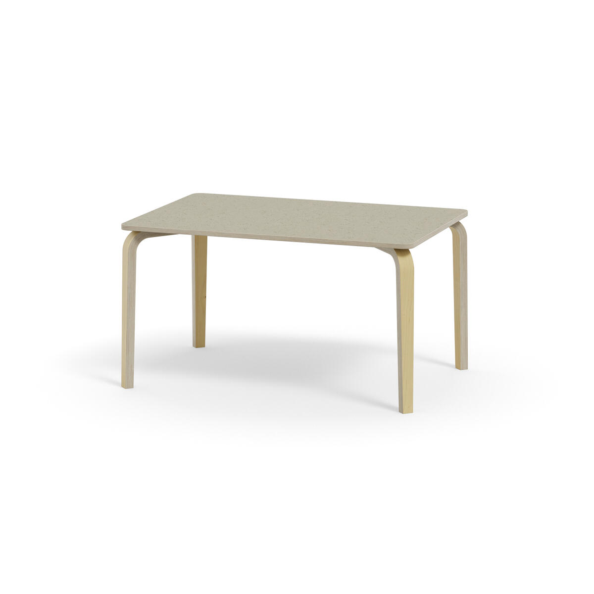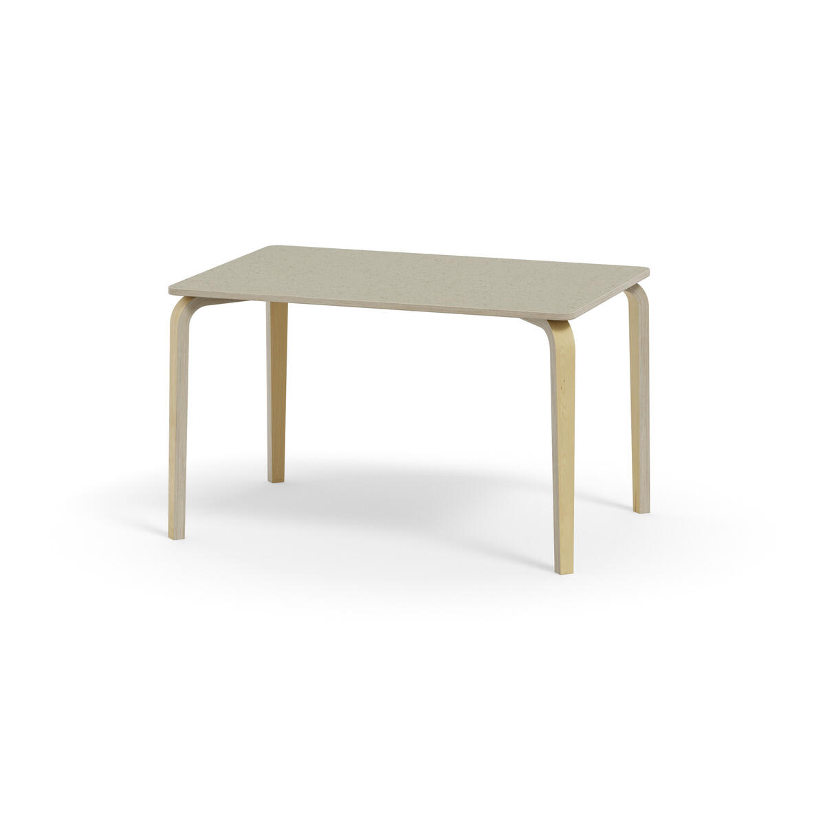 Arcus-pöydissä ei ole alasarjaa, joten jalkatilaa on enemmän. Akustoivassa kannessa on korkeapainelaminaattipinta ja abs-reunanauha. Pöydän kannen kulmissa on 40 mm pyöristys. Kuultovalkoiset koivuvaneriset taivutejalat kapenevat alaspäin, jalan kulma on ulkoneva.