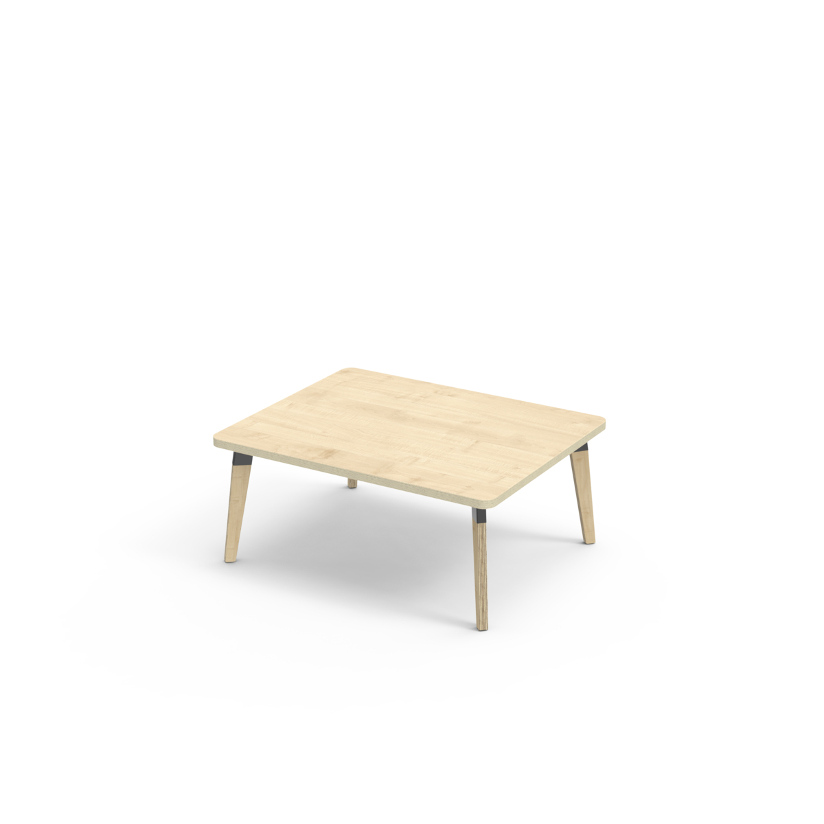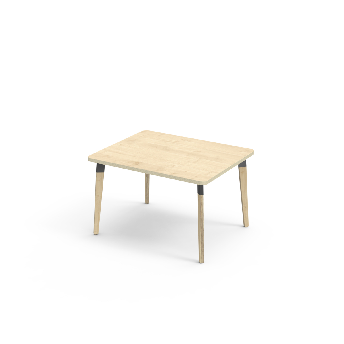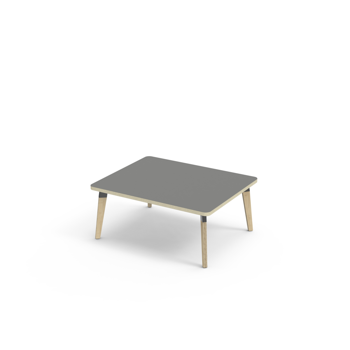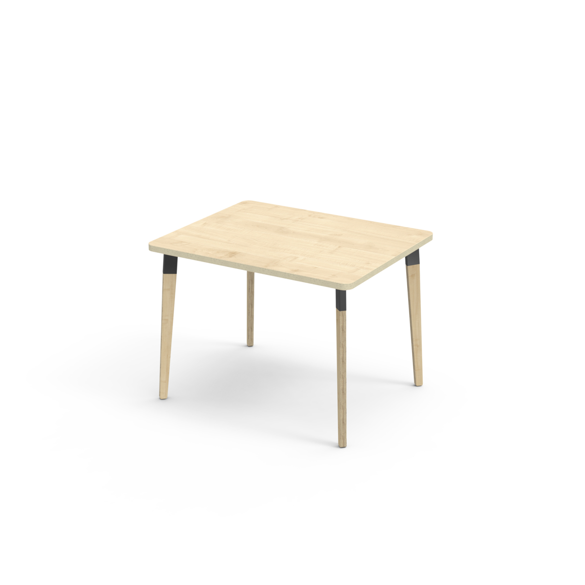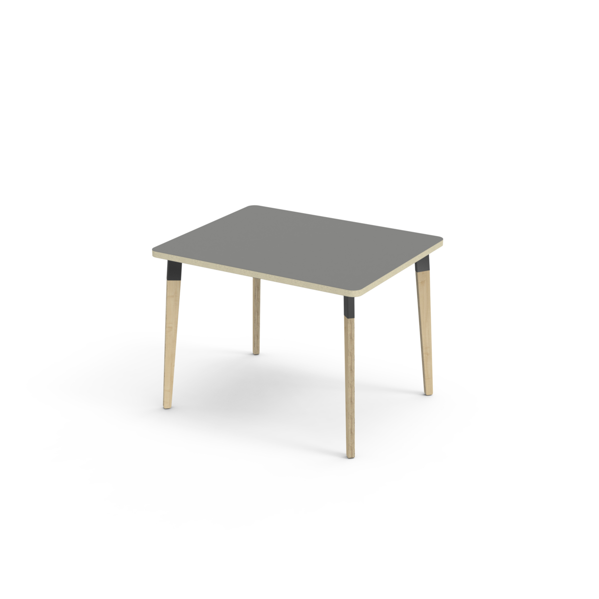 Pöydän kannessa on laminaattipinta. Pöydän kannen kulmissa on 40 mm pyöristys, jonka ansiosta pöytä saa modernin ja tyylikkään ilmeen. Jalat ovat suorakulmaiset ja valmistettu kirkaslakatusta koivuvanerista, ja ne on kiinnitetty tukevalla mustalla metalliholkilla. Jalan kulma on ulkoneva; rakenne takaa sekä vakauden että kestävyyden.