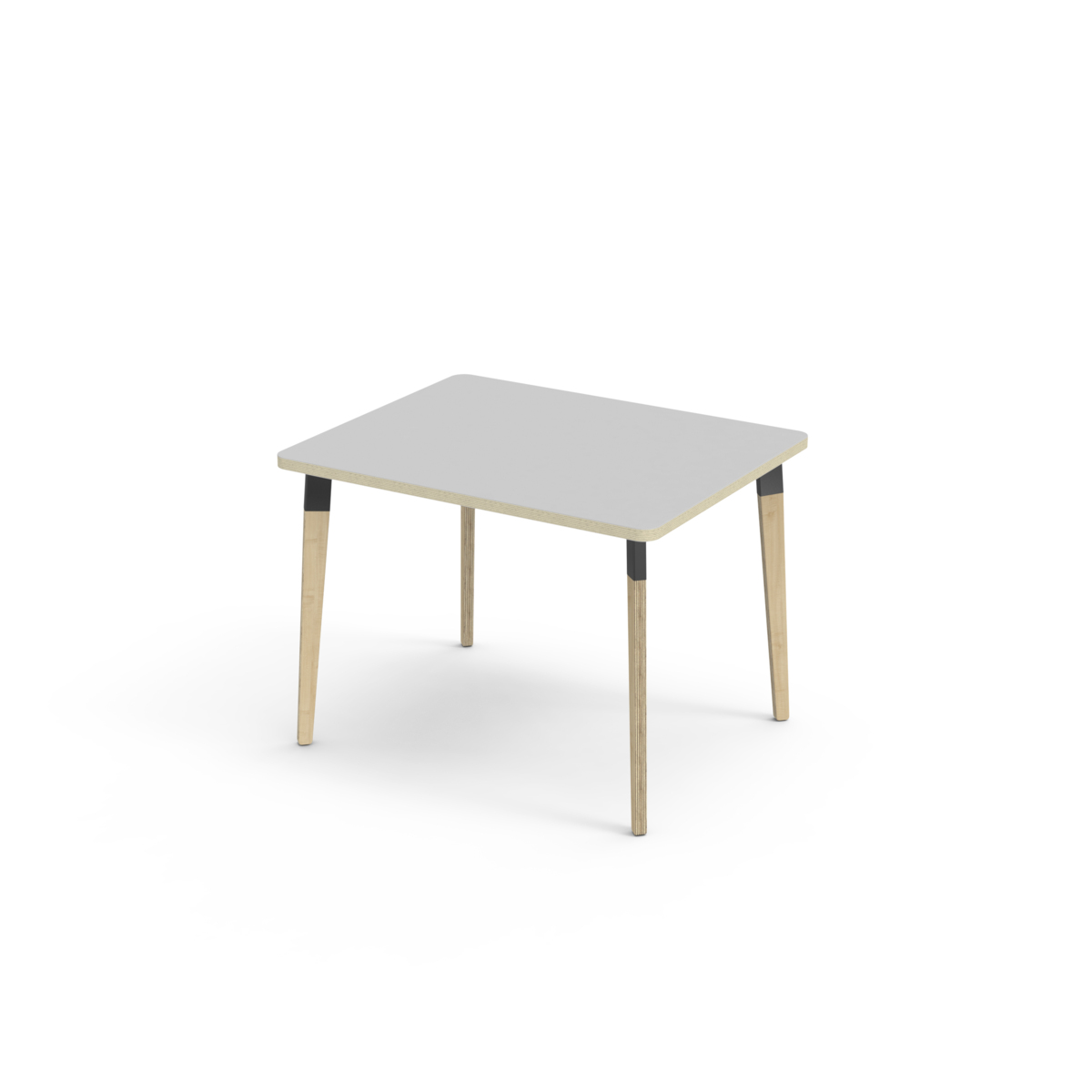 Pöydän kannessa on kestävä korkeapainelaminaattipinta. Pöydän kannen kulmissa on 40 mm pyöristys, jonka ansiosta pöytä saa modernin ja tyylikkään ilmeen. Jalat ovat suorakulmaiset ja valmistettu kirkaslakatusta koivuvanerista, ja ne on kiinnitetty tukevalla valkoisella metalliholkilla. Jalan kulma on ulkoneva; rakenne takaa sekä vakauden että kestävyyden.