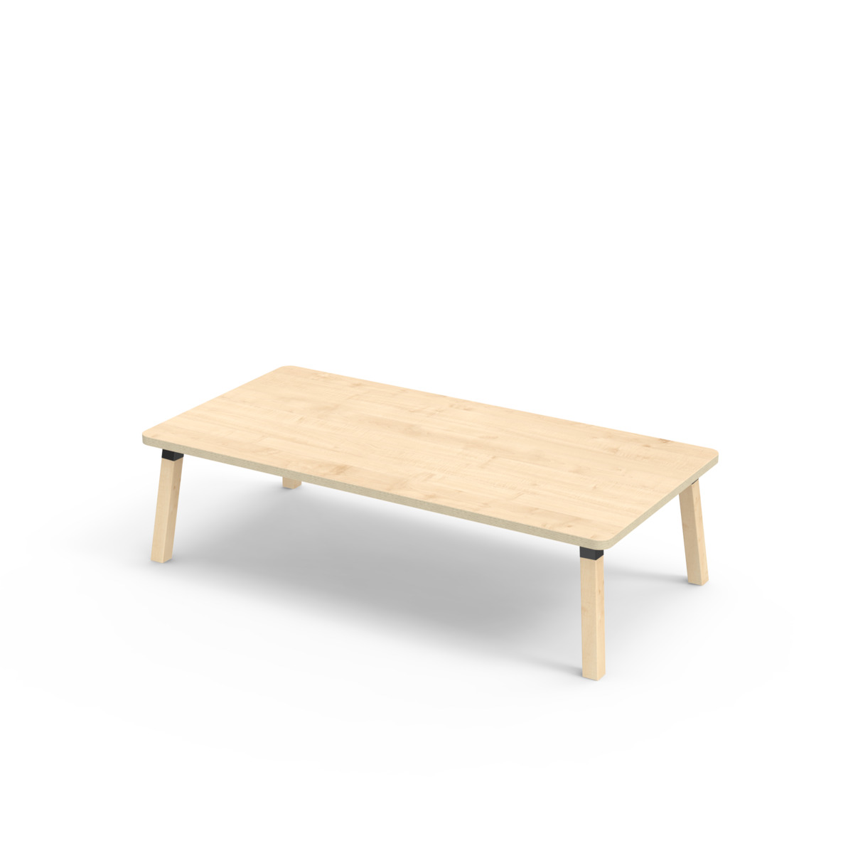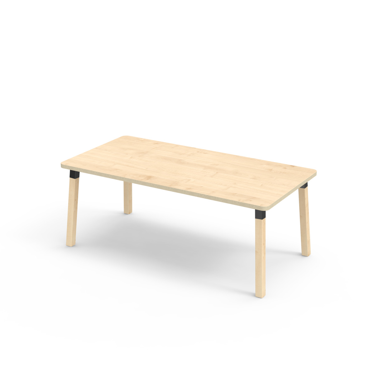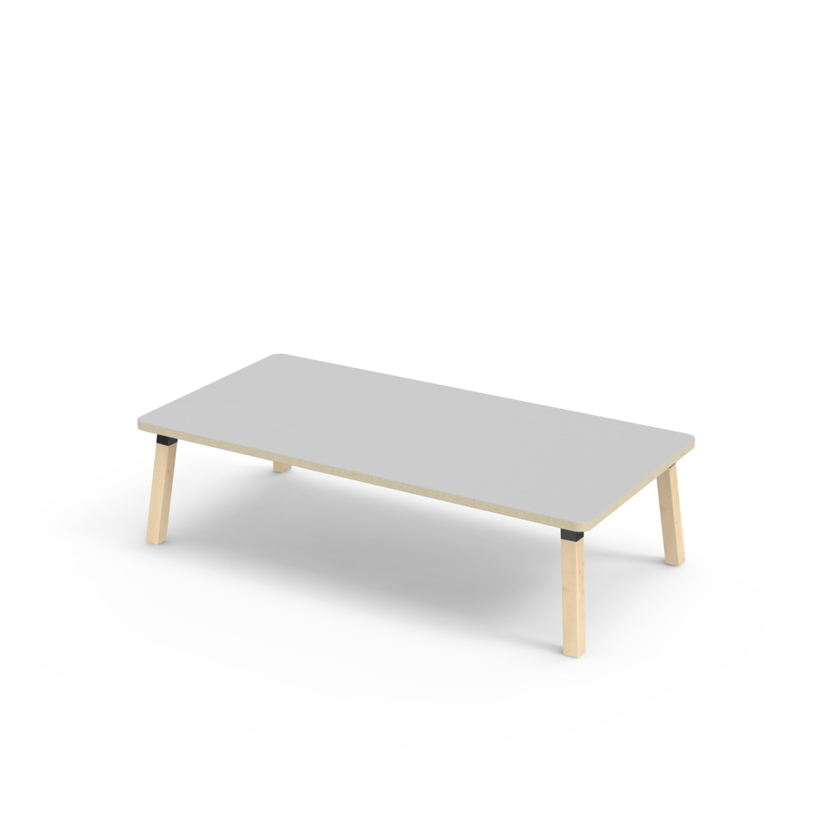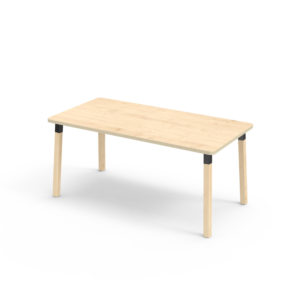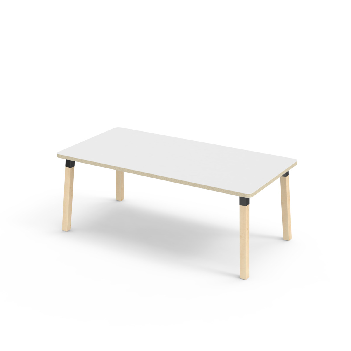 Pöydän kannessa on ääntä vaimentava rakenne ja kestävä korkeapainelaminaattipinta. Pöydän kannen kulmissa on 40 mm pyöristys, jonka ansiosta pöytä saa modernin ja tyylikkään ilmeen. Jalat on valmistettu kirkaslakatusta massiivikoivusta ja kiinnitetty tukevalla metalliholkilla. Jalan kulma on ulkoneva; rakenne takaa sekä vakauden että kestävyyden.