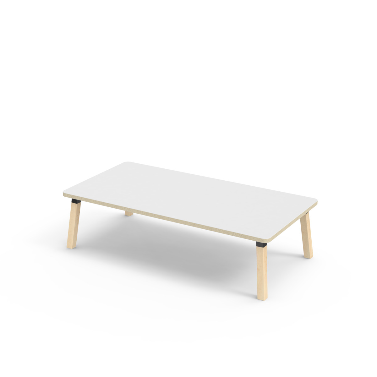 Pöydän kannessa on laminaattipinta. Pöydän kannen kulmissa on 40 mm pyöristys, jonka ansiosta pöytä saa modernin ja tyylikkään ilmeen. Jalat on valmistettu kirkaslakatusta massiivikoivusta ja kiinnitetty tukevalla metalliholkilla. Jalan kulma on ulkoneva; rakenne takaa sekä vakauden että kestävyyden.