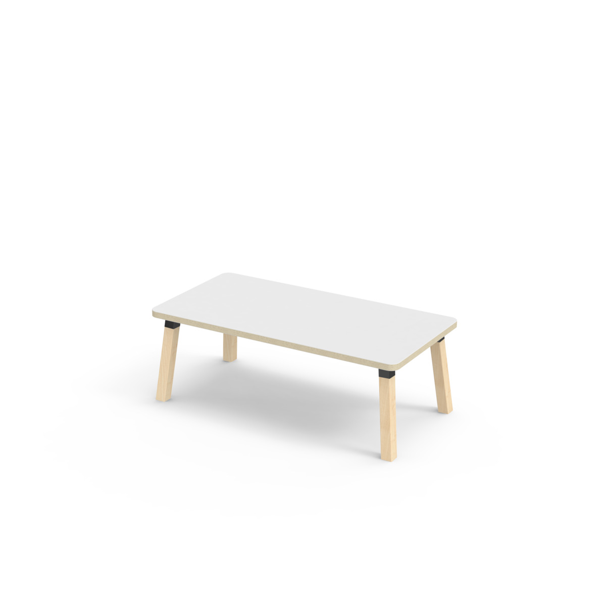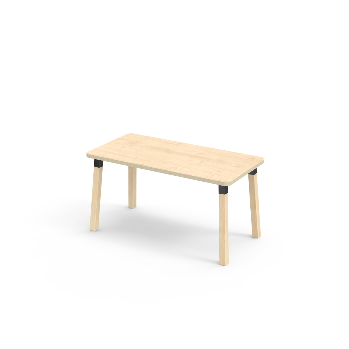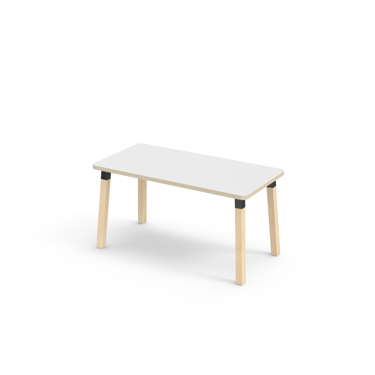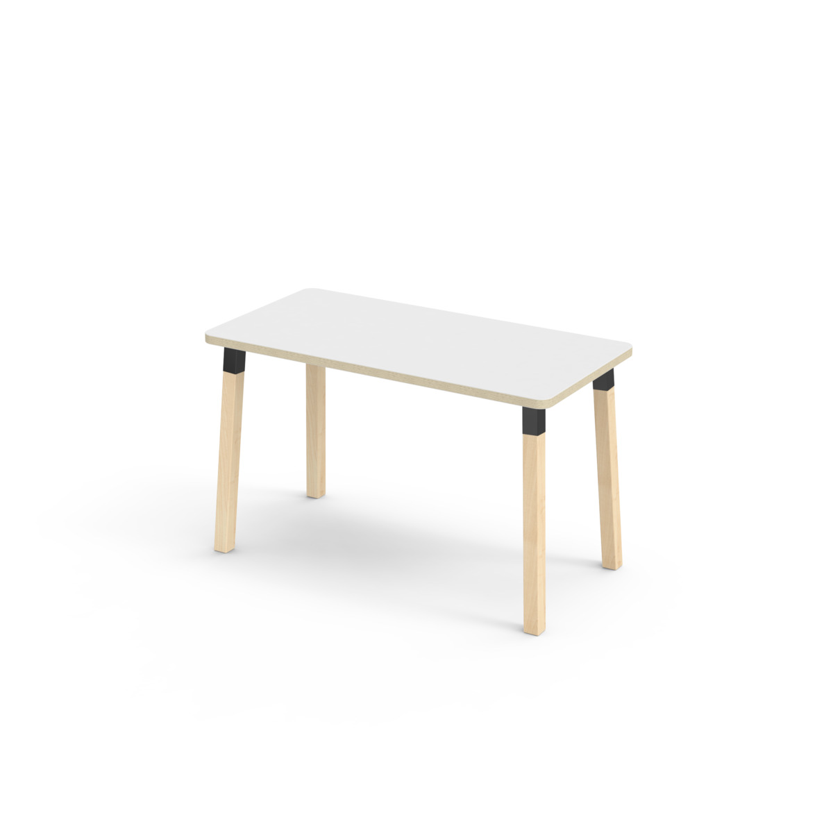 Pöydän kannessa on laminaattipinta. Pöydän kannen kulmissa on 40 mm pyöristys, jonka ansiosta pöytä saa modernin ja tyylikkään ilmeen. Jalat on valmistettu kirkaslakatusta massiivikoivusta ja kiinnitetty tukevalla metalliholkilla. Jalan kulma on ulkoneva; rakenne takaa sekä vakauden että kestävyyden.
