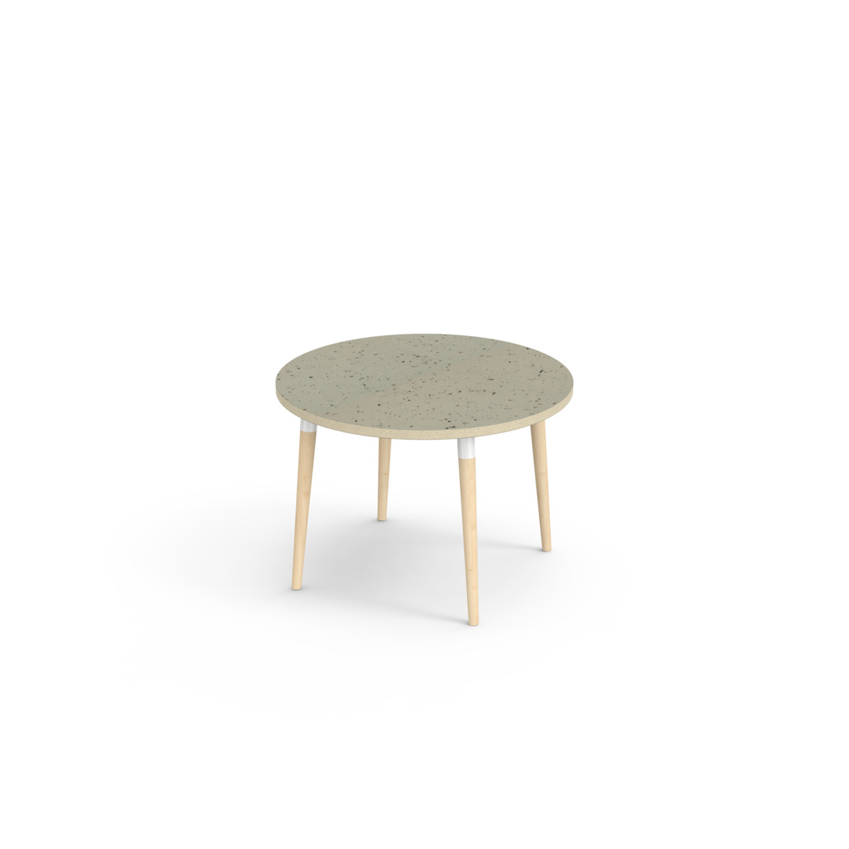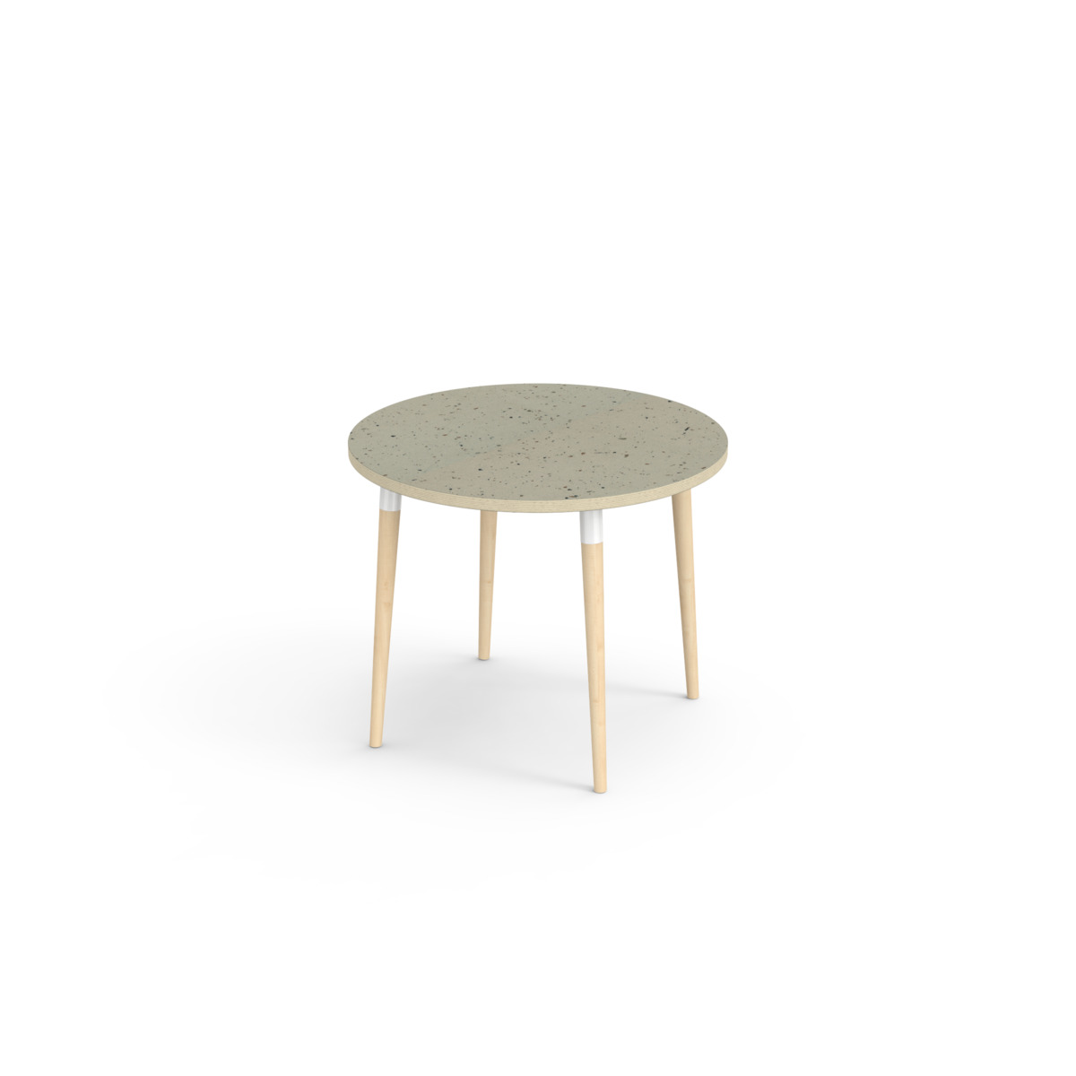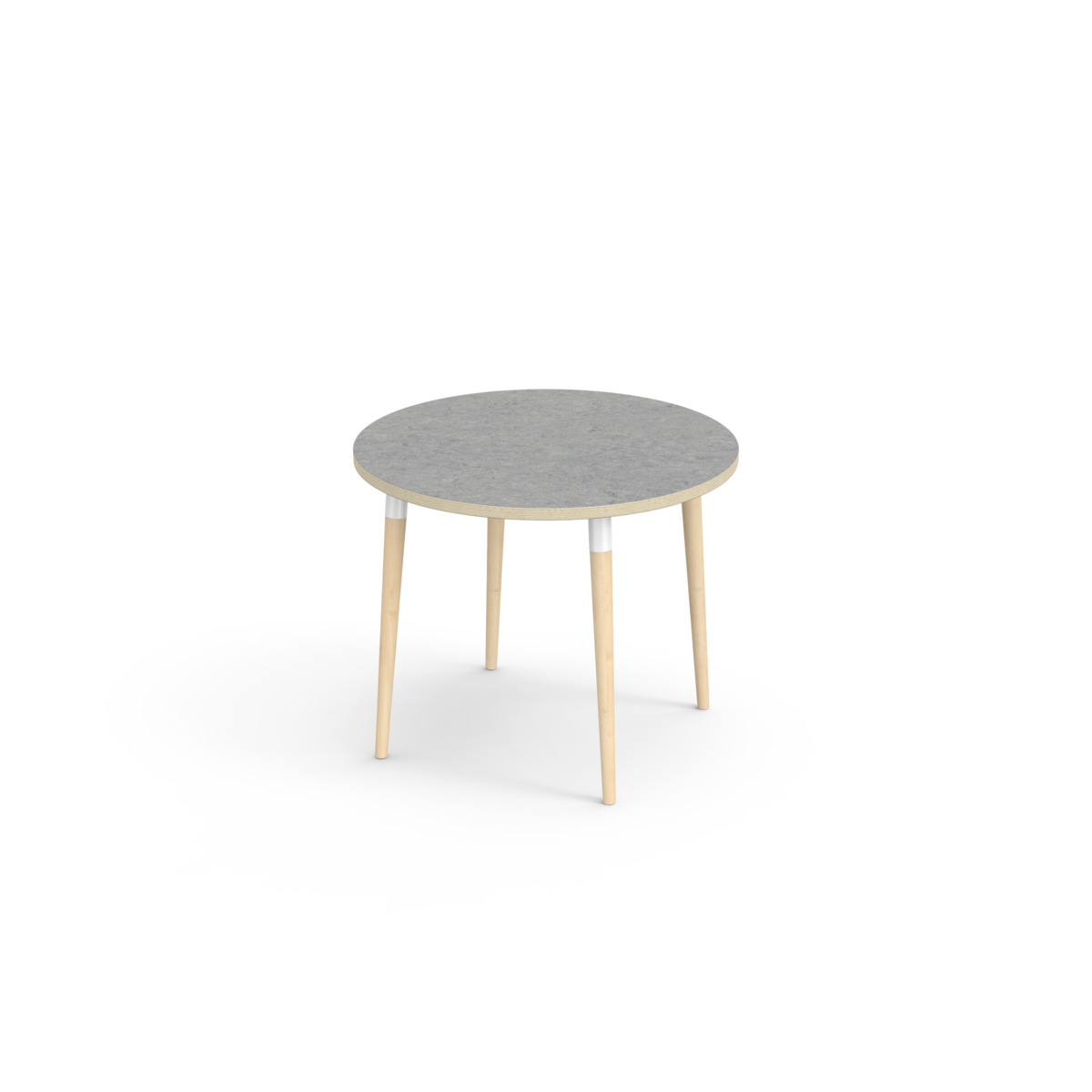 Pöydän kannessa on ääntä vaimentava rakenne ja kestävä korkeapainelaminaattipinta. Pöydän kannen kulmissa on 40 mm pyöristys, jonka ansiosta pöytä saa modernin ja tyylikkään ilmeen. Jalat ovat kartiomaiset ja valmistettu kirkaslakatusta massiivikoivusta, ja ne on kiinnitetty tukevalla valkoisella metalliholkilla. Jalan kulma on ulkoneva; rakenne takaa sekä vakauden että kestävyyden.