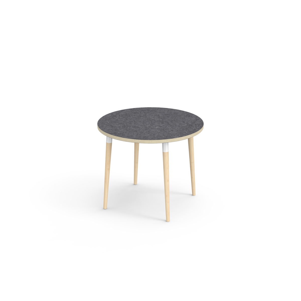 Pöydän kannessa on ääntä vaimentava rakenne ja kestävä korkeapainelaminaattipinta. Pöydän kannen kulmissa on 40 mm pyöristys, jonka ansiosta pöytä saa modernin ja tyylikkään ilmeen. Jalat ovat kartiomaiset ja valmistettu kirkaslakatusta massiivikoivusta, ja ne on kiinnitetty tukevalla mustalla metalliholkilla. Jalan kulma on ulkoneva; rakenne takaa sekä vakauden että kestävyyden.
