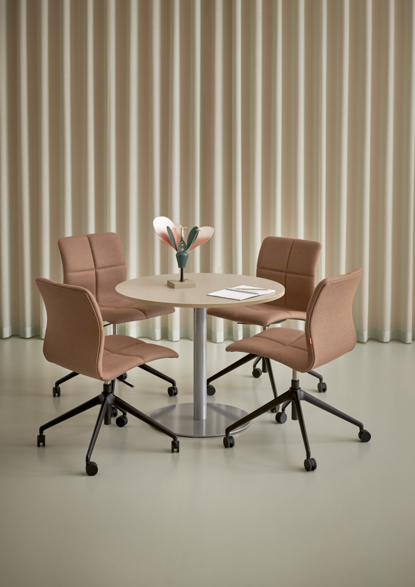Pilastro pilaripöytä BX ø 90 cm akustik linoleum, hopea jalusta