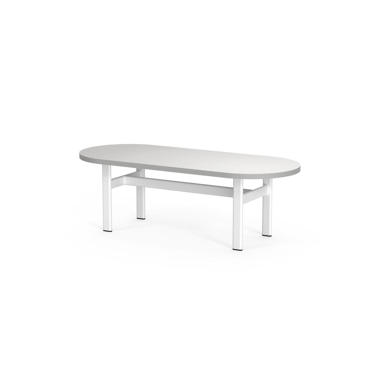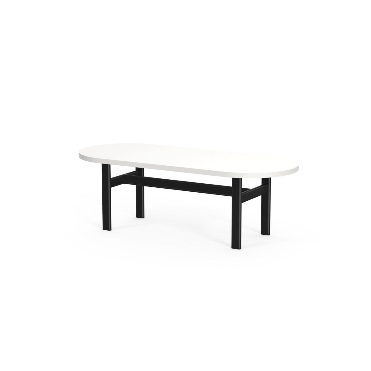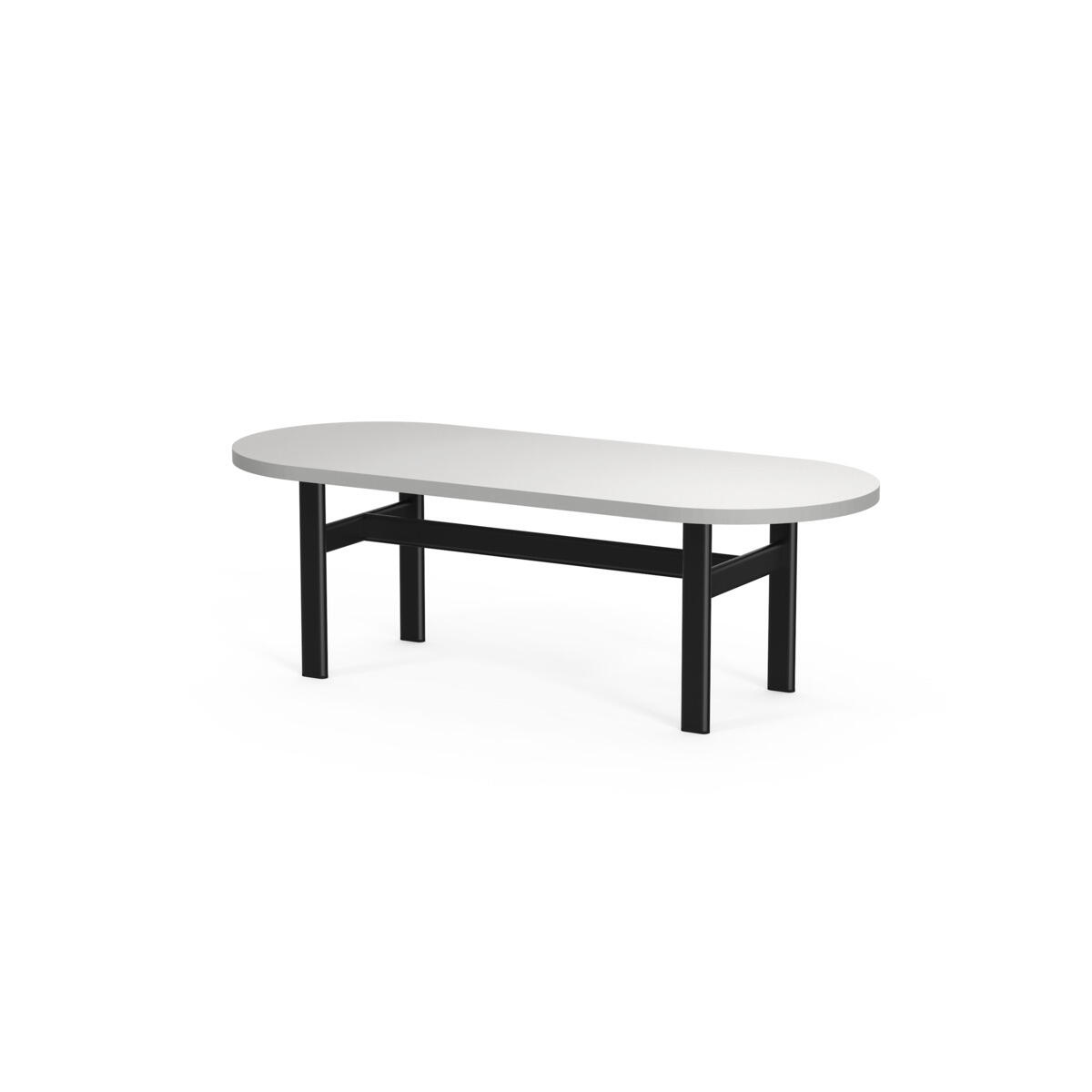 Frame on moderni kalustesarja, jonka ilmettä määrittävät viimeistellyt, minimalistiset yksityiskohdat ja tunnistettava ovaali muotokieli. Pöydässä on laminaattikansi ja pulverimaalattu metallirunko.