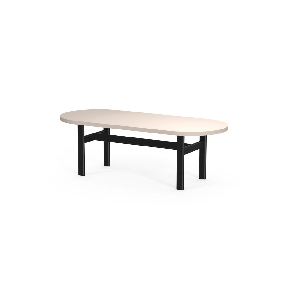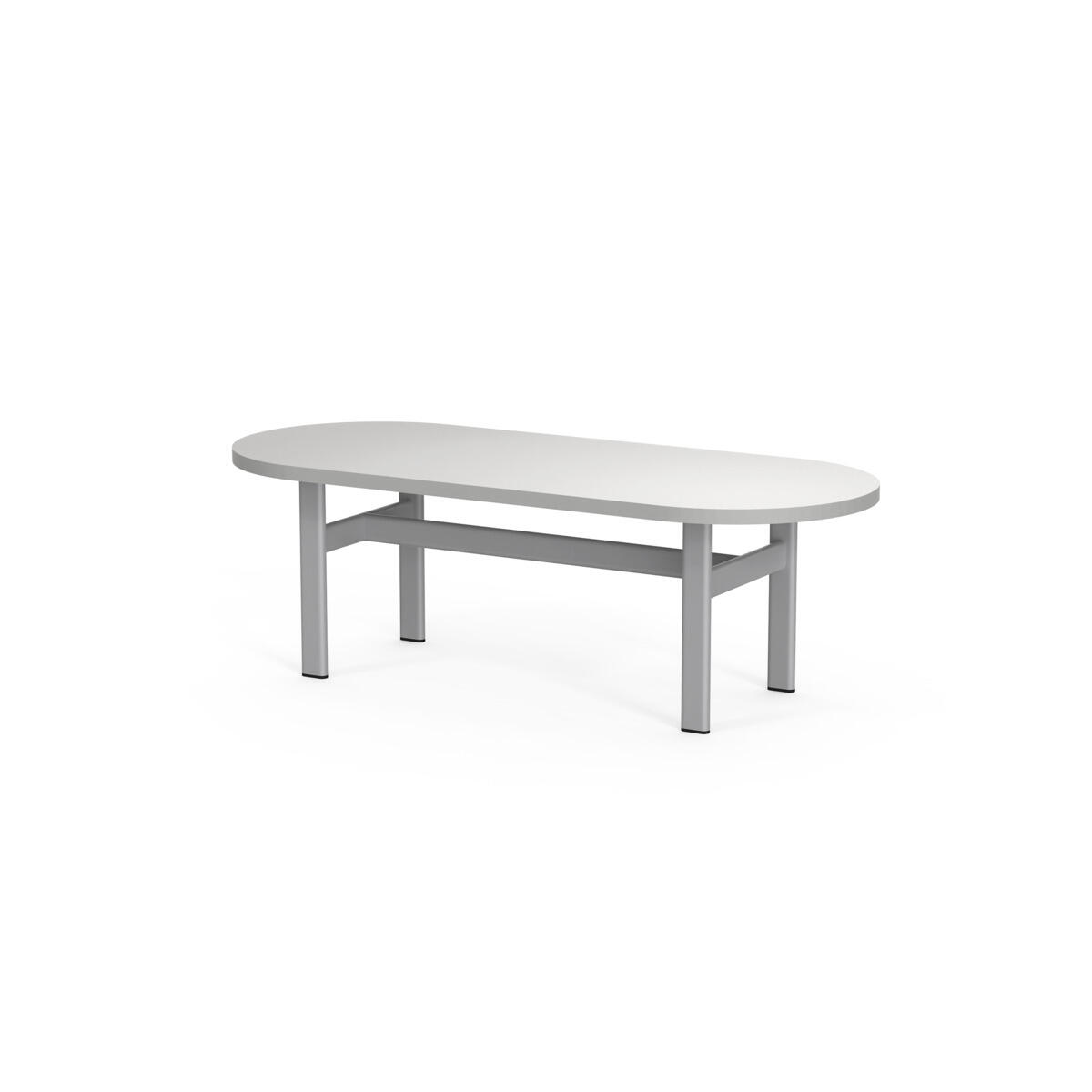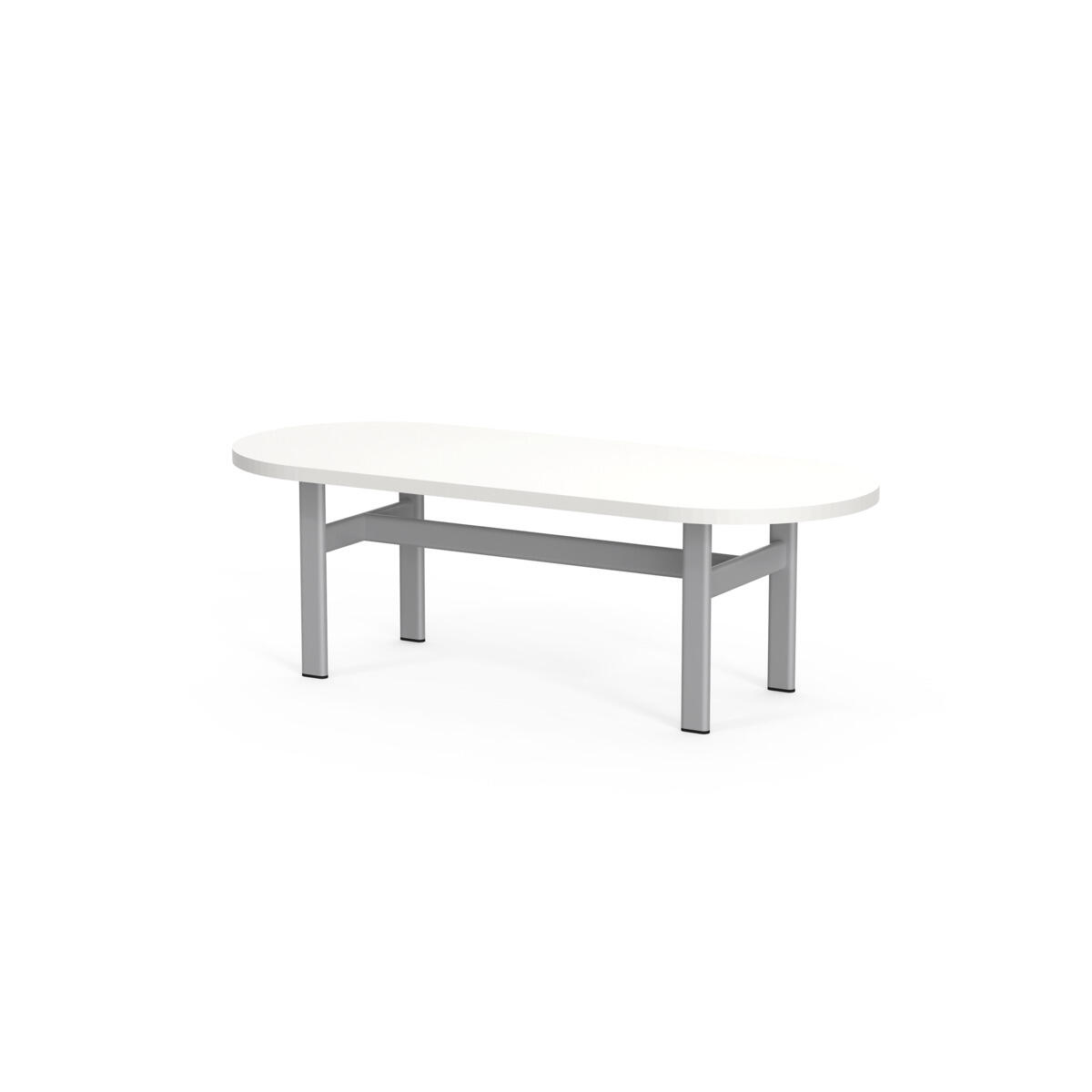 Frame on moderni kalustesarja, jonka ilmettä määrittävät viimeistellyt, minimalistiset yksityiskohdat ja tunnistettava ovaali muotokieli. Pöydässä on laminaattikansi ja pulverimaalattu metallirunko.