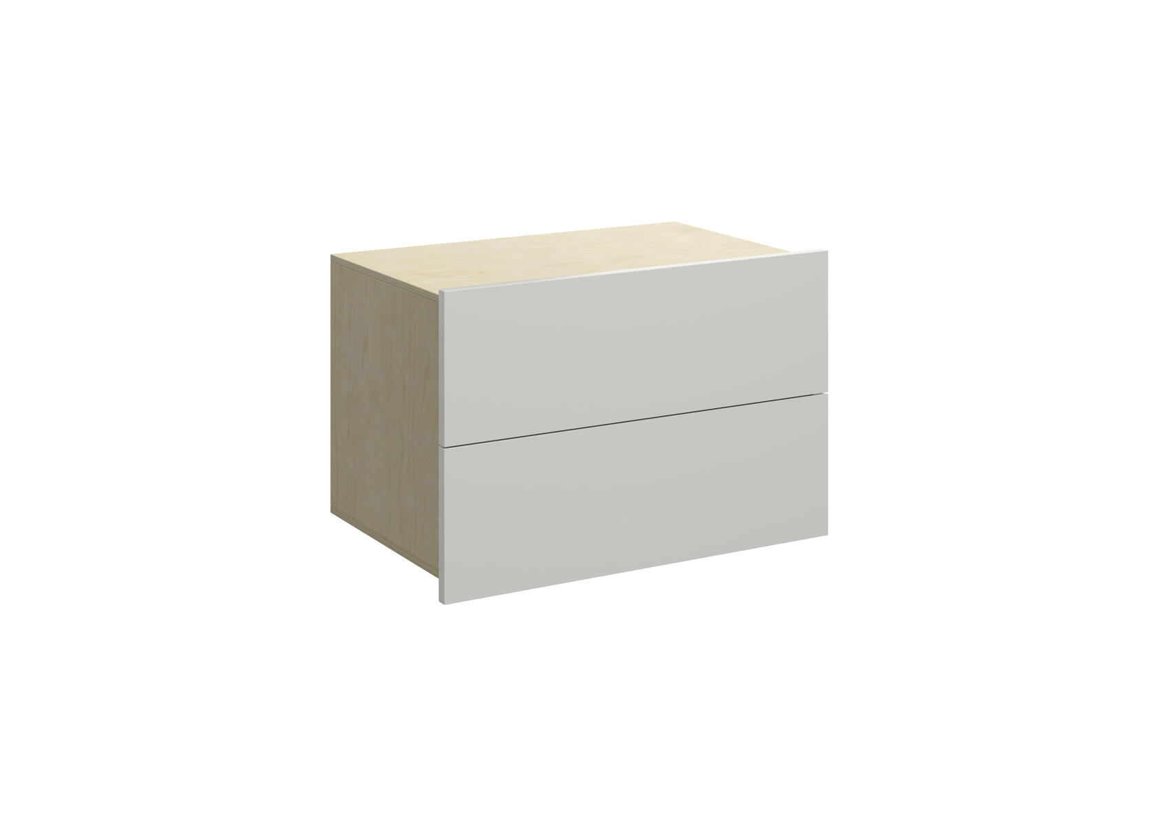 Fixa -sarjaan kuuluva laatikko, joka sopii kahteen vierekkäiseen A4-lokeroon. Aukkoon menee kaksi laatikkoa päällekkäin, jos on hyllytaso välissä. Kädenaukot joka puolella helpottaa käsittelyä. Laatikko on kätevä nostaa esille sisältöineen, koska siinä ei ole pintoja vahingoittavia kiskoja tai ruuveja. Valmistettu 10 mm koivuvanerista. Saatavana koivunvärisenä ja kaikissa hienoissa Fixa-väreissämme. Joutsenmerkitty, lisenssinumerolla 5031 0099.