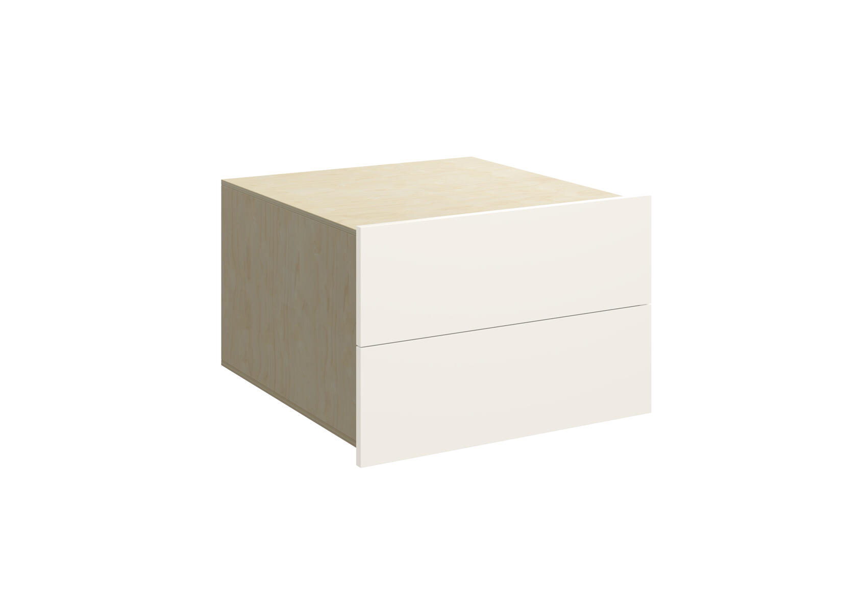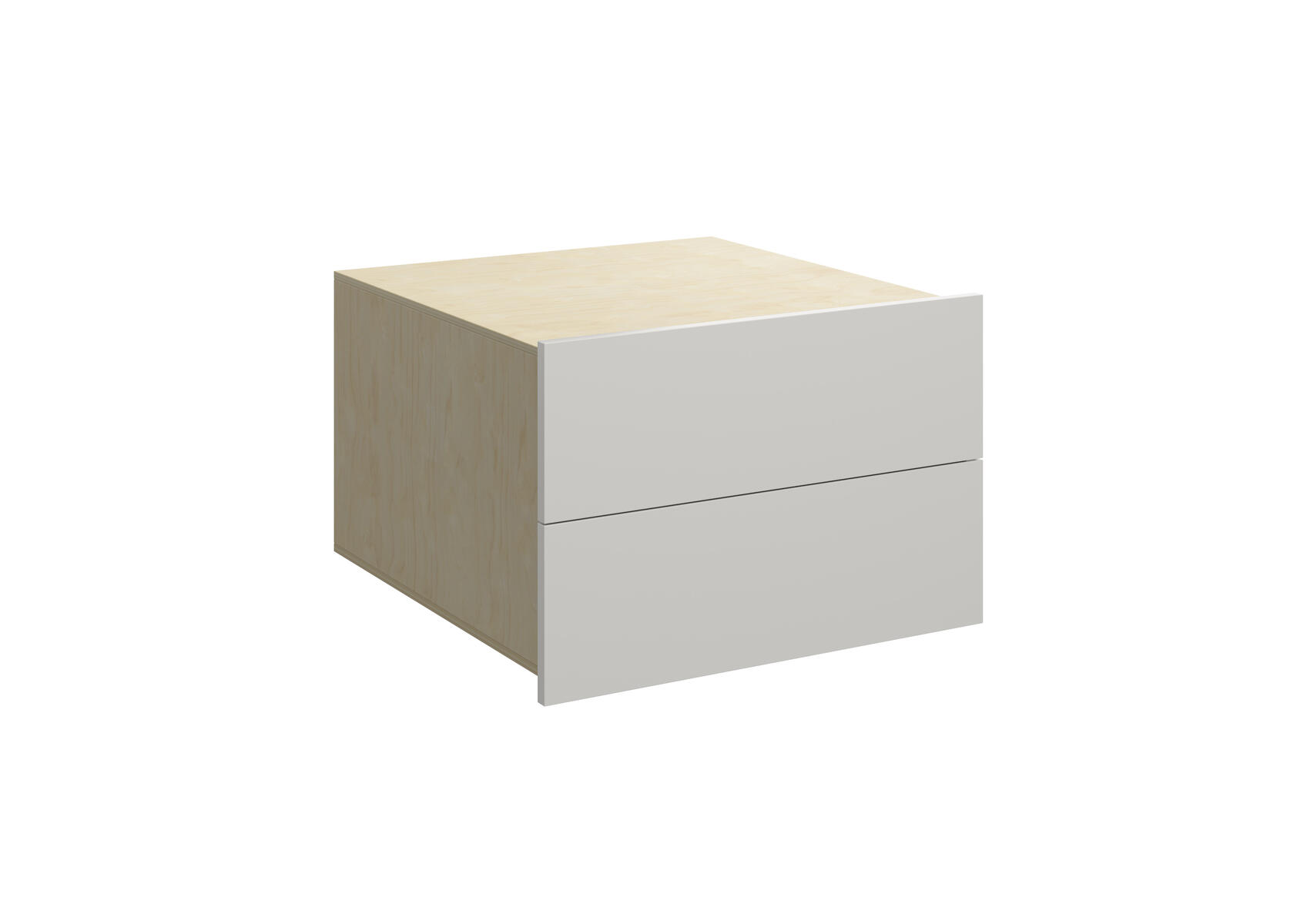 Fixa -sarjaan kuuluva laatikko, joka sopii kahteen vierekkäiseen A4-lokeroon. Aukkoon menee kaksi laatikkoa päällekkäin, jos on hyllytaso välissä. Kädenaukot joka puolella helpottaa käsittelyä. Laatikko on kätevä nostaa esille sisältöineen, koska siinä ei ole pintoja vahingoittavia kiskoja tai ruuveja. Valmistettu 10 mm koivuvanerista. Saatavana koivunvärisenä ja kaikissa hienoissa Fixa-väreissämme. Joutsenmerkitty, lisenssinumerolla 5031 0099.