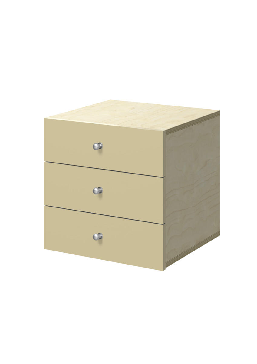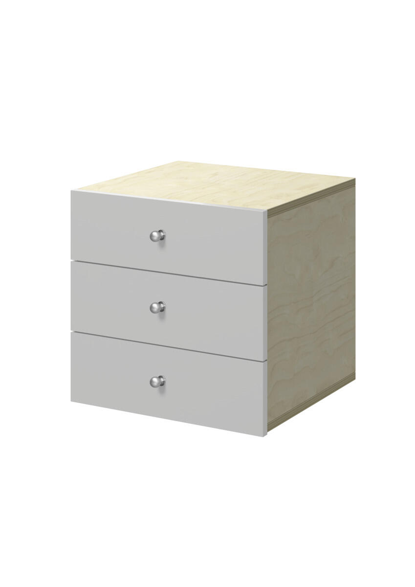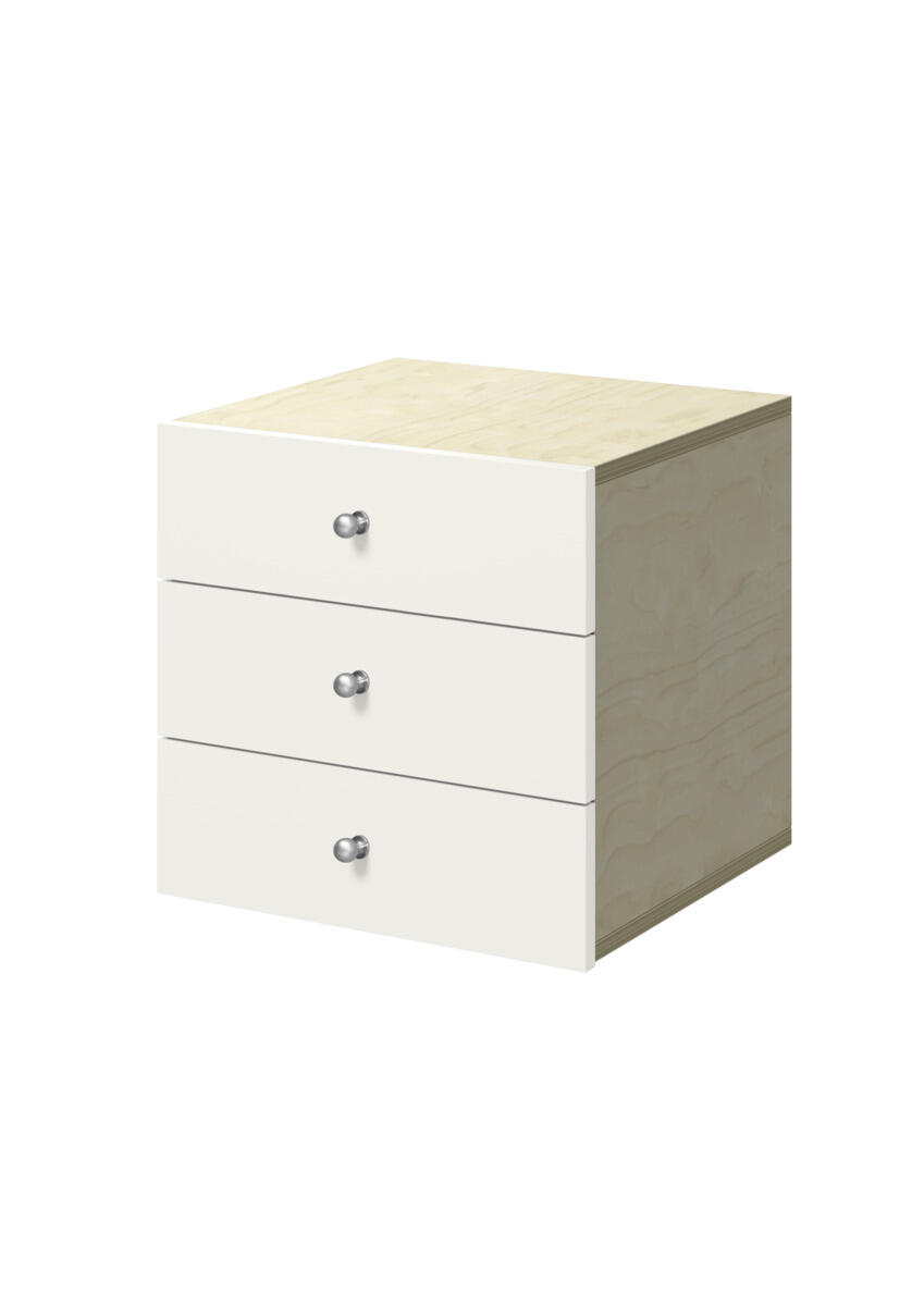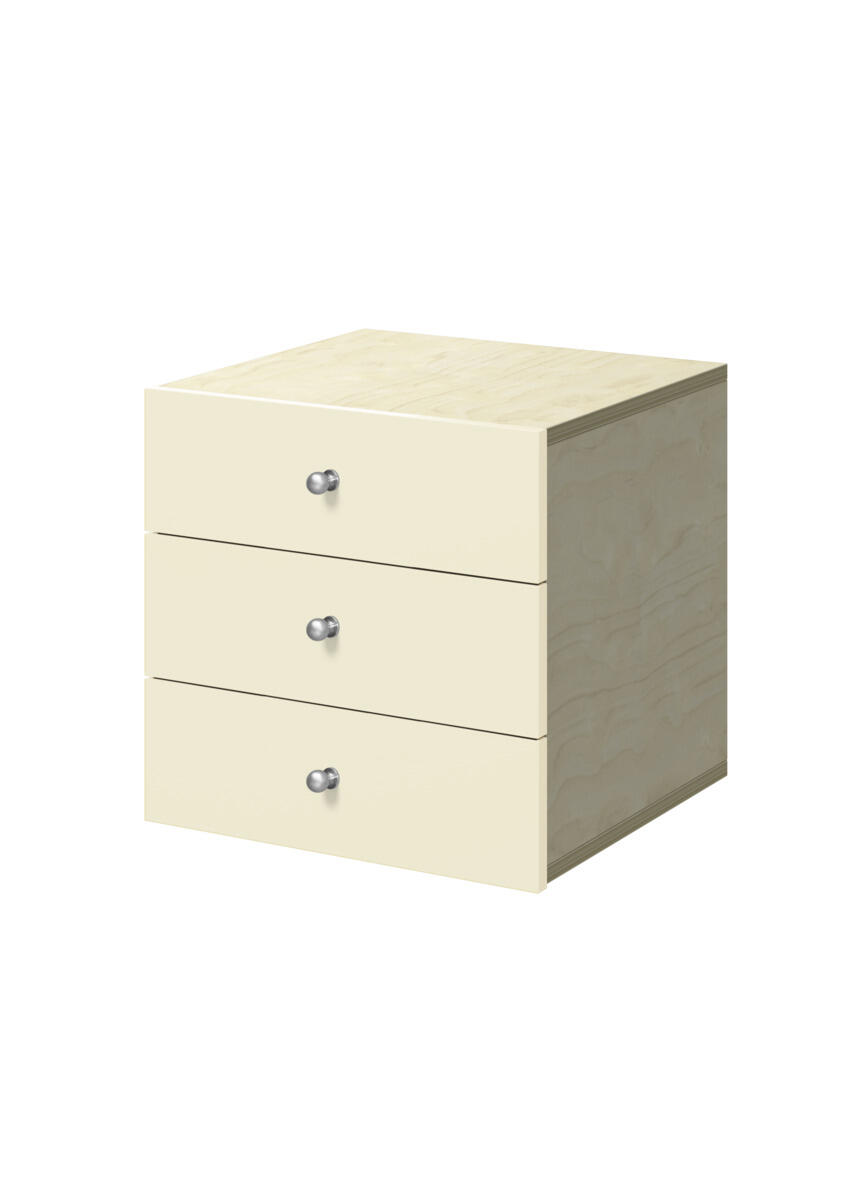 3 kpl laatikoita nuppivetimillä. Laatikot mahtuvat yhteen lokeroon. Laatikon mitat: 28,5x30x6 cm. Kokonaismitat 37x36x35 cm. Laatikoissa ei ole stopparia.