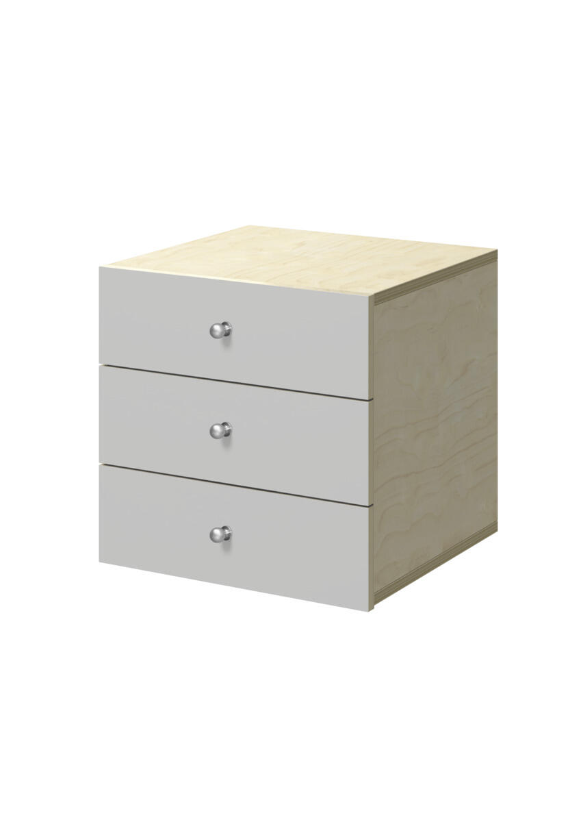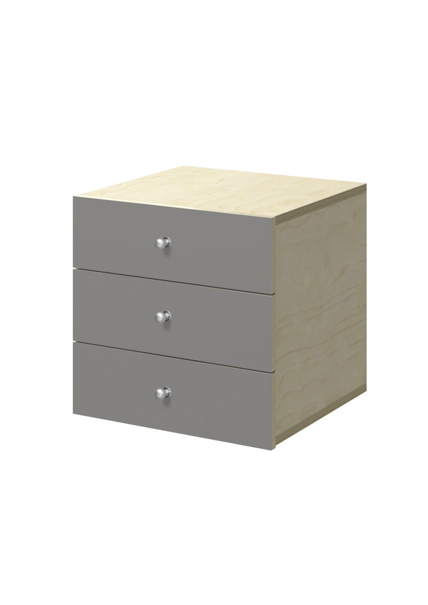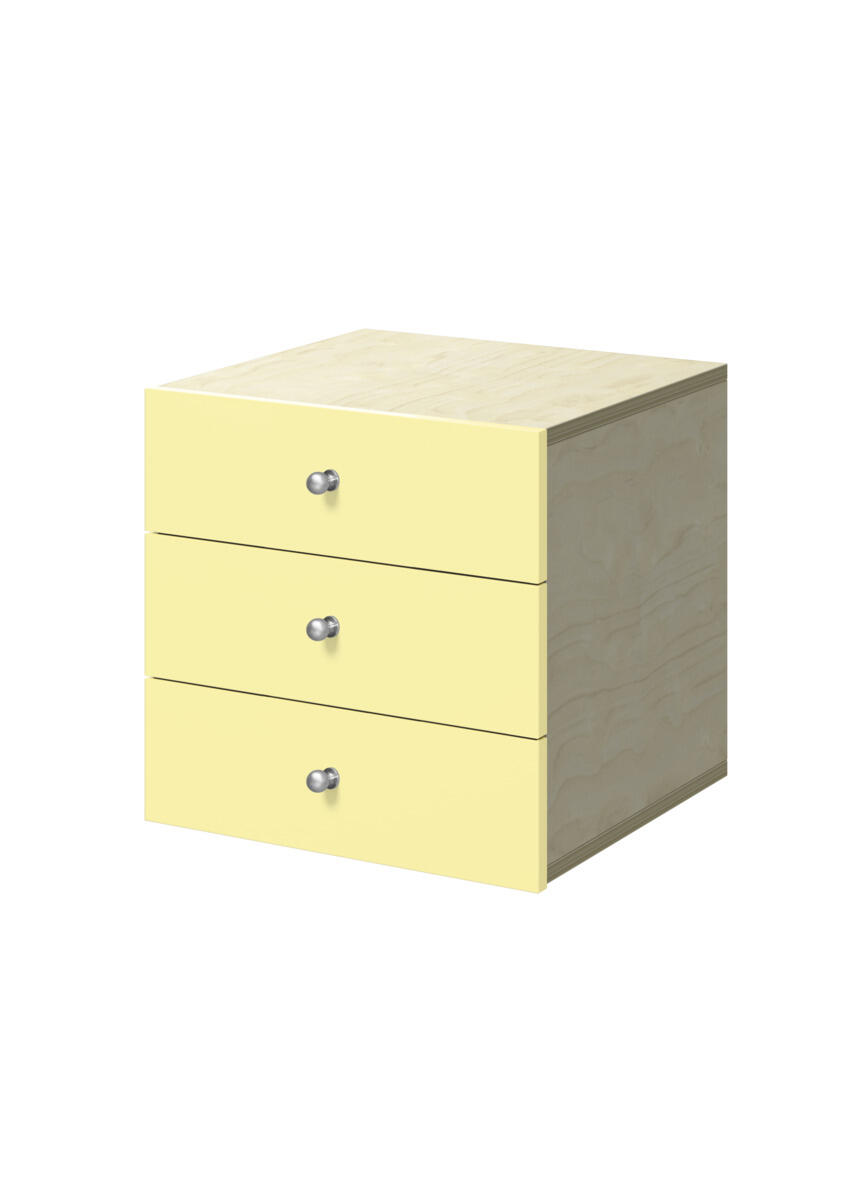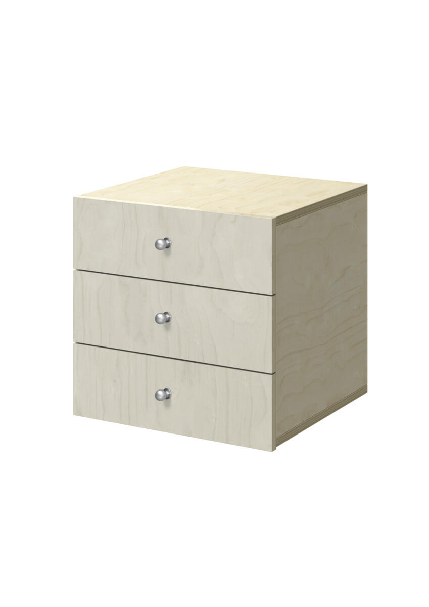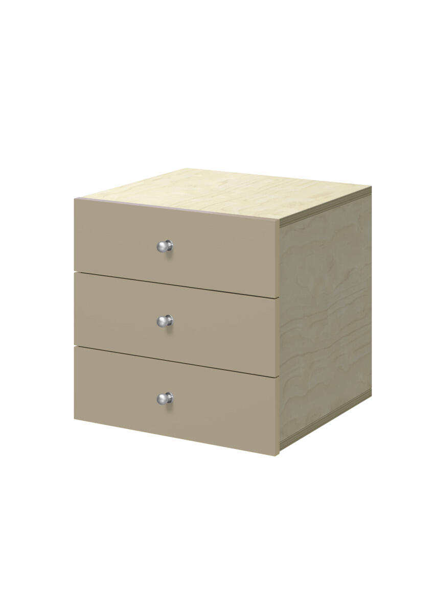 3 kpl laatikoita nuppivetimillä. Laatikot mahtuvat yhteen lokeroon. Laatikon mitat: 28,5x30x6 cm. Kokonaismitat 37x36x35 cm. Laatikoissa ei ole stopparia.