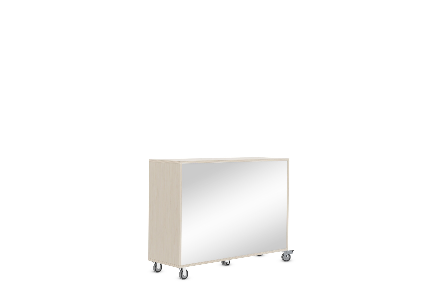 Valmistettu laadukkaasta koivuvanerista, tausta ilmoitustaulu. Toimitetaan koottuna, mukana pyörät, asennettava. 2 kiinteää pyörää toisessa päädyssä ja 2 liikkuvaa lukittavilla pyörillä toisessa päädyssä. Liikuteltavien kalusteiden avulla voi helpommin ja joustavammin muunnella huoneen sisustusta. Haluamme kuitenkin huomauttaa, että pyörillä varustettuihin hyllyihin ja kaappeihin liittyy suurempi kaatumisriski erityisesti silloin, kun yksiköt asetetaan vapaasti lattialle (eikä esim. seinän viereen). Älä aseta painavia esineitä ylähyllyille. Älä anna lasten siirtää hyllyä. Kun et liikuta säilytintä, lukitse pyörät siten, että etupyörät on käännetty eteenpäin ja takapyörät taaksepäin. Käytettäessä hyllyä vapaasti seisovana tilanjakajana, suosittelemme hankkimaan lisävarusteena tukijalat 82788. Suosittelemme, että siirrettävät hyllyt, joiden korkeus on yli 80 cm, sijoitetaan seinää vasten. Värivalinta koskee kannen korkeapainelaminaattipintaa. Kuultovalkoinen kansi on vaneria.
