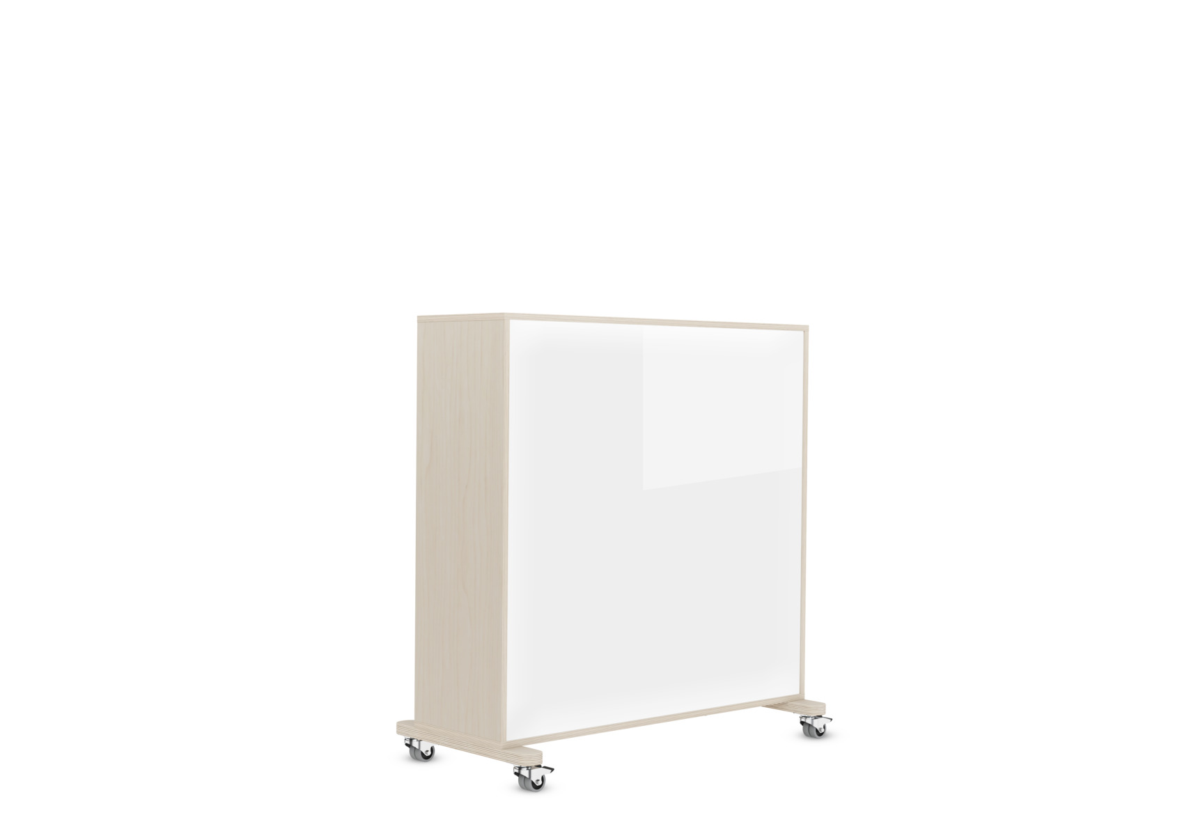 Valmistettu laadukkaasta koivuvanerista, tausta magneettinen valkotaulu. Toimitetaan koottuna, mukana pyörälliset tukijalat, pyörät lukittavat. Liikuteltavien kalusteiden avulla voi helpommin ja joustavammin muunnella huoneen sisustusta. Haluamme kuitenkin huomauttaa, että pyörillä varustettuihin hyllyihin ja kaappeihin liittyy suurempi kaatumisriski erityisesti silloin, kun yksiköt asetetaan vapaasti lattialle (eikä esim. seinän viereen). Älä aseta painavia esineitä ylähyllyille. Älä anna lasten siirtää hyllyä. Kun et liikuta säilytintä, lukitse pyörät siten, että etupyörät on käännetty eteenpäin ja takapyörät taaksepäin. Suosittelemme, että siirrettävät hyllyt, joiden korkeus on yli 80 cm, sijoitetaan seinää vasten. Värivalinta koskee kannen korkeapainelaminaattipintaa. Kuultovalkoinen kansi on vaneria.