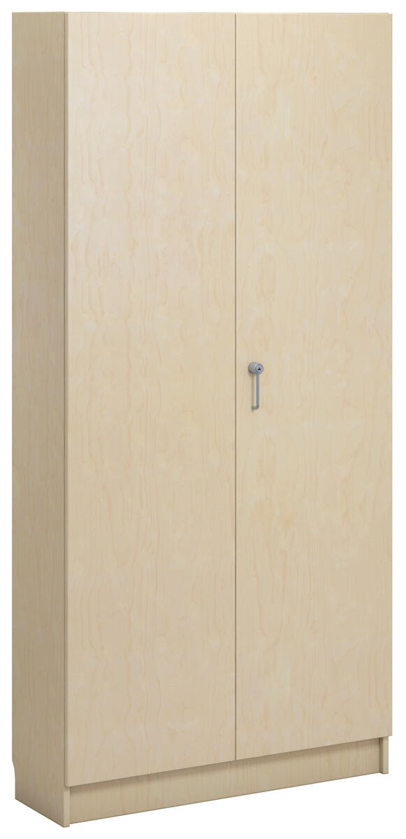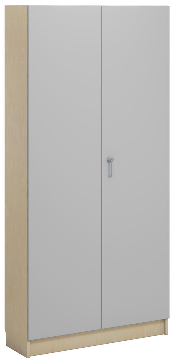 Materiaalikaappi laminaattirungolla. Ovet laminaattia tai korkeapainelaminaattia. Ovissa vanerikuvioinen reunanauha. Ovissa spanjoletti lukot sekä 170 astetta kääntyvät saranat. Kaksi avainta. Sisällä 5 hyllytasoa joista 3 siirrettäviä.