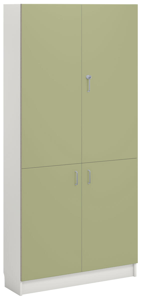 Materiaalikaappi laminaattirungolla. Ovet laminaattia tai korkeapainelaminaattia. Ovissa vanerikuvioinen reunanauha. Ovissa spanjoletti lukot sekä 170 astetta kääntyvät saranat. Kaksi avainta. Sisällä 5 hyllytasoa joista 3 siirrettäviä.