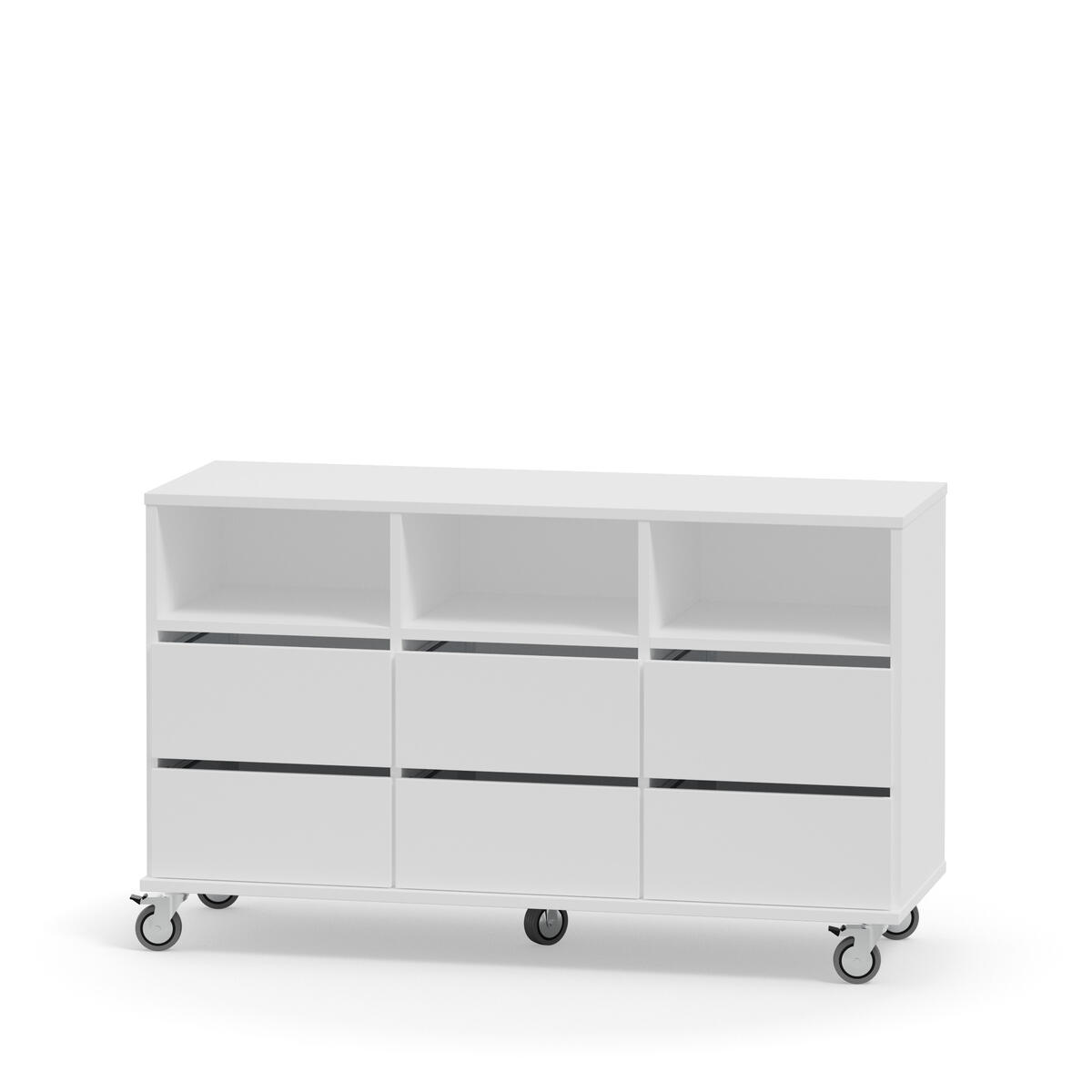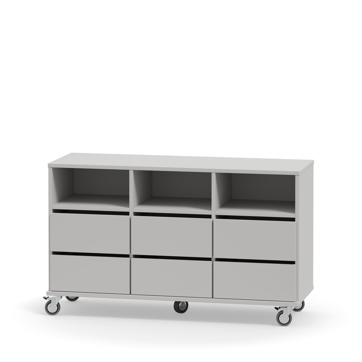 Säilytyskaluste, jossa Gratnellin laatikot. Valittavana pyörät, jalat tai sokkeli. Kuudesta pyörästä kaksi on kiinteitä, mikä tekee säilytyksestä vakaan siirrettäessä. Vapaasti liikkuvat pyörät ovat lukittavia. Materiaali: 18 mm lastulevyä, jossa on laminaattipinta ja ABS-reunanauha. Runko jaloilla ja sokkelilla tulee kiinnittää seinään mukana tulevilla seinäkiinnikkeillä. Ruuvit eivät sisälly toimitukseen. Laatikoiden kiskoissa on pysäyttimet. Laatikon mitat: L31,2 S42,7 K15 cm. Laatikon väri valittavissa.