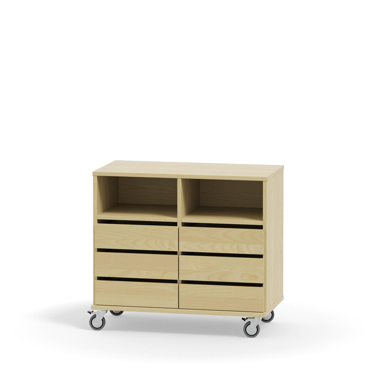 Oppilassäilytin pyörillä. Toimitetaan koottuna. Neljä pyörää, joista toisen päädyn kaksi pyörää on vapaasti liikkuvaa ja lukittavia. Laatikoiden yläreunaan jää pieni rako, joka toimii postiluukkuna ja vedinaukkona. Pehmeästi sulkeutuvat laatikot. Lipaston materiaalina 18 mm lastulevy laminaattipinnalla ja abs-reunanauhalla. Pohjalevyn syvyys 44,5 cm. Pehmeästi sulkeutuvat laatikot.