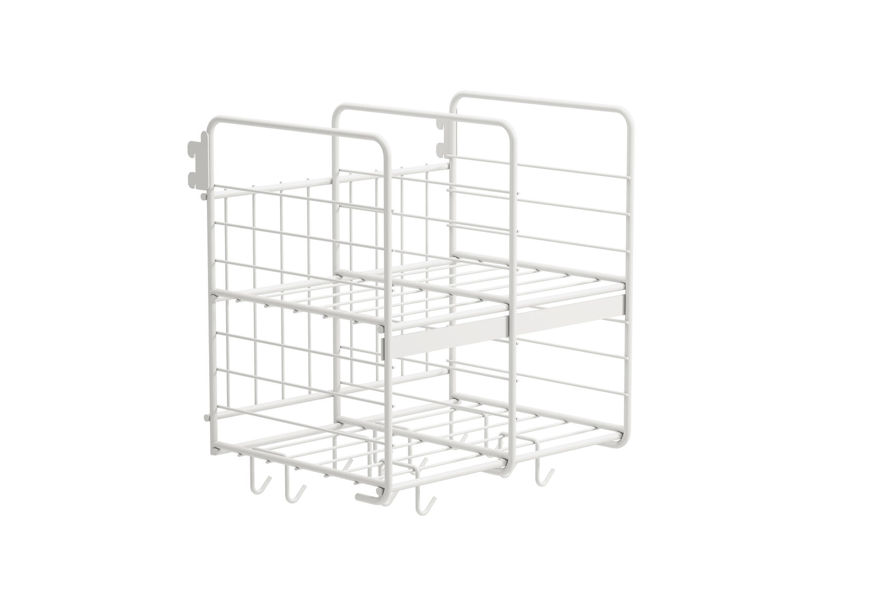 Kenkähylly reikälevyä, syvyys 32 cm. Mukana kurataso, joka kerää tehokkaasti kaiken lian ja hiekan. Sopii sekä lattia- että seinämalliin. Helppo korkeussäätö. Sopii Wille-peruselementteihin.