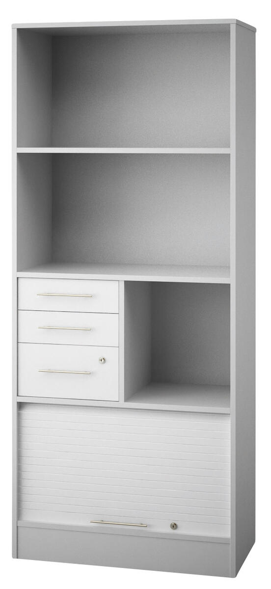 Mitat: L80 x S42 x K145 cm. Yksivärinen. Laminaattirunko. Laatikoiden etulevyt korkeapainelaminaattia. Lukittava. Kaksi avainta. 3 hyllytasoa, 3 laatikkoa.