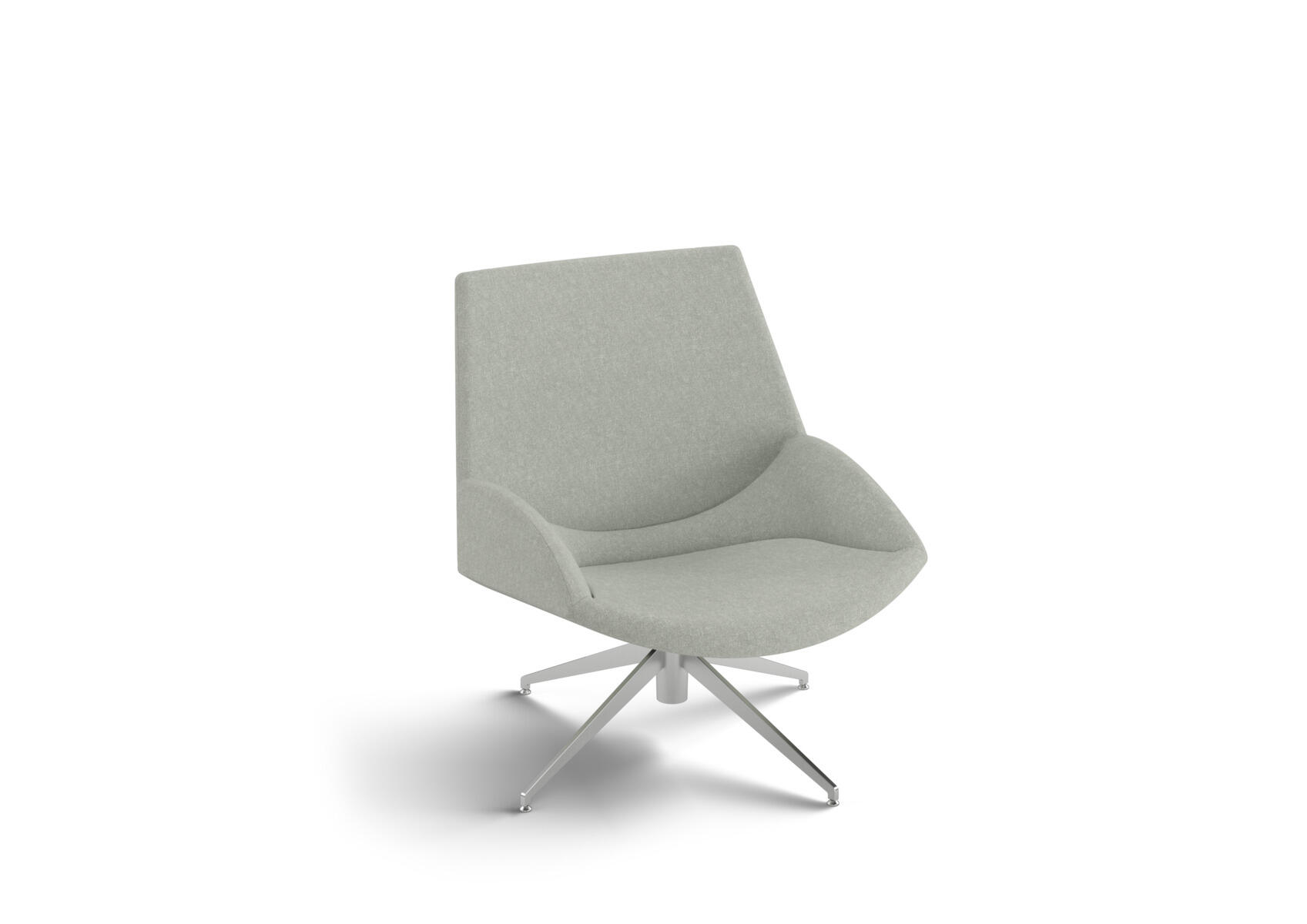 Modernisti muotoiltu ja erittäin mukava pyörivä nojatuoli. Kallistusmekanismi. Jauhemaalattu metalliristikkojalka. Puurunko ja vaahtomuovipehmuste. Lisämukavuutta varten tarjolla on myös niskatuki lisävarusteena.