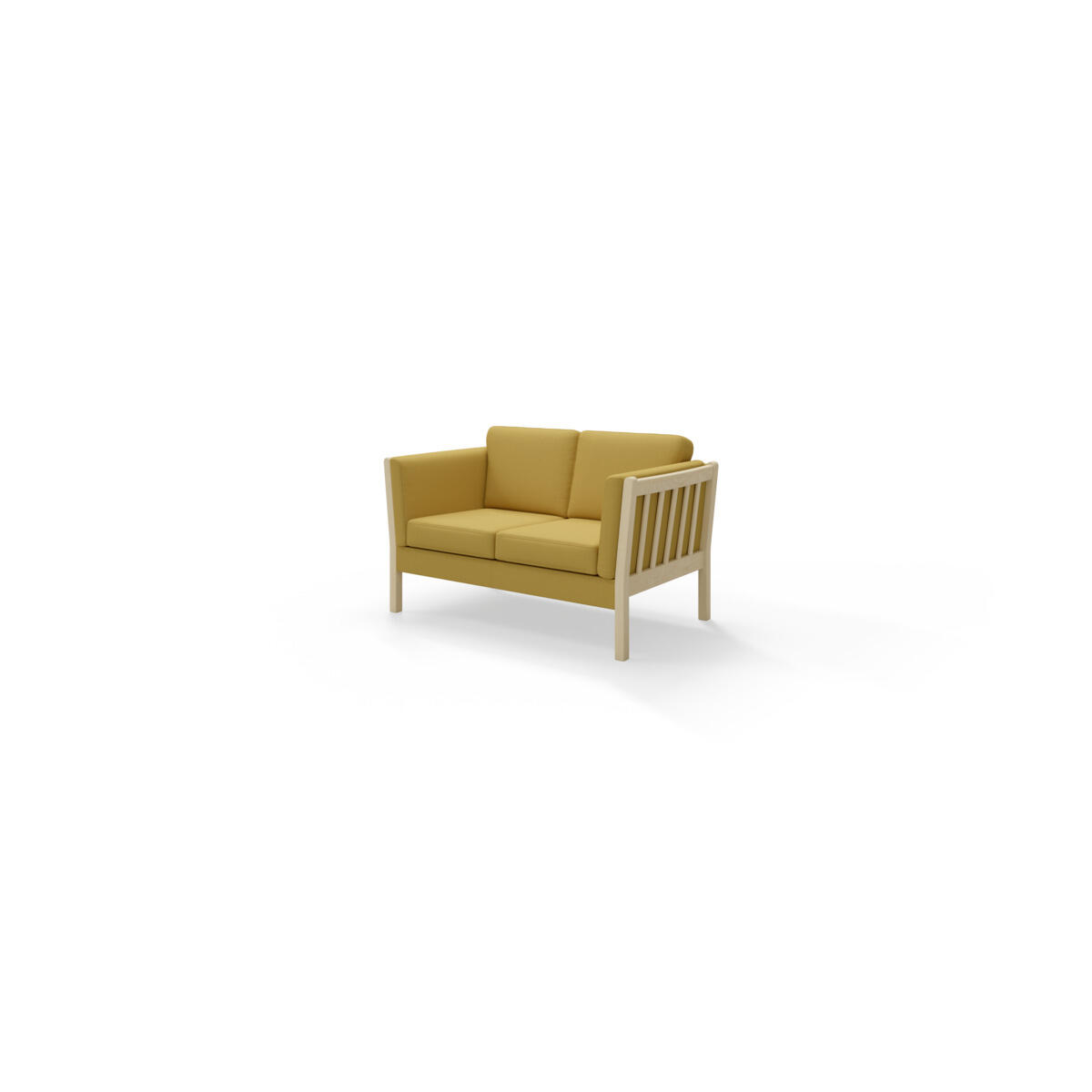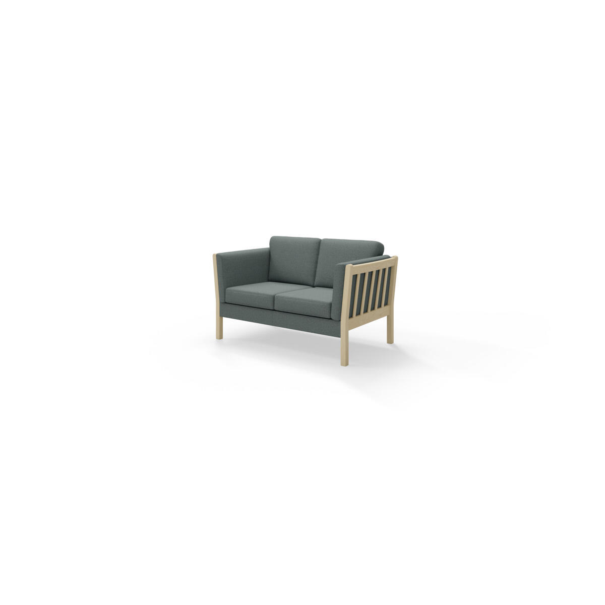Mitat: 144x82 cm. Istuinkorkeus 44 cm, istuinsyvyys 53 cm. Selkänojan kokonaiskorkeus 83 cm. Tyynyissä vaahtomuovitäyte ja rungossa nozag-jousitus. Värivaihtoehtoina sininen, harmaa ja punainen. Irrotettavat päälliset pestävissä 30 °C:ssa. Jalat mustaksi maalattua koivua.