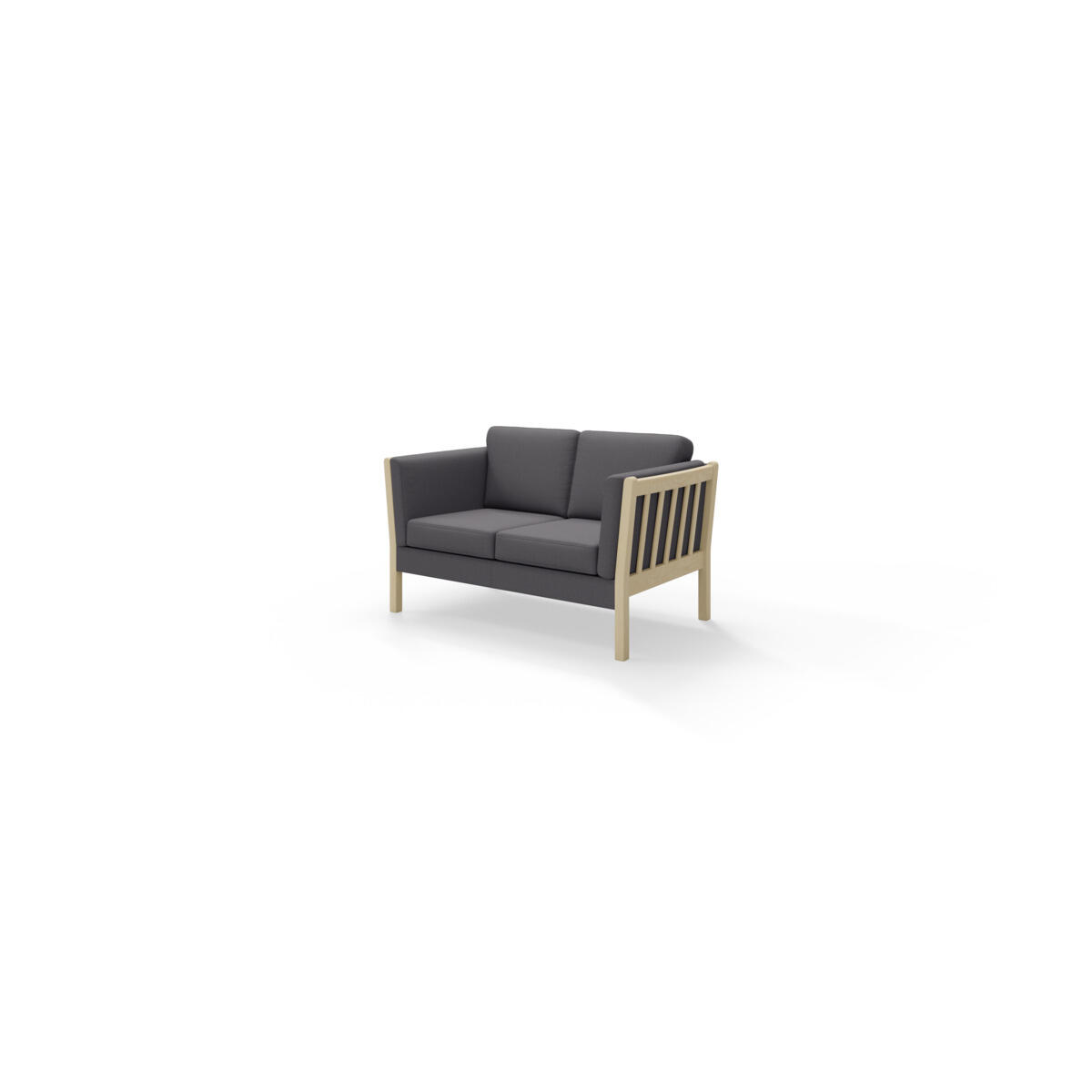 Mitat: 144x82 cm. Istuinkorkeus 44 cm, istuinsyvyys 53 cm. Selkänojan kokonaiskorkeus 83 cm. Tyynyissä vaahtomuovitäyte ja rungossa nozag-jousitus. Irrotettavat päälliset pestävissä 30 °C:ssa. Jalat mustaksi maalattua koivua.
