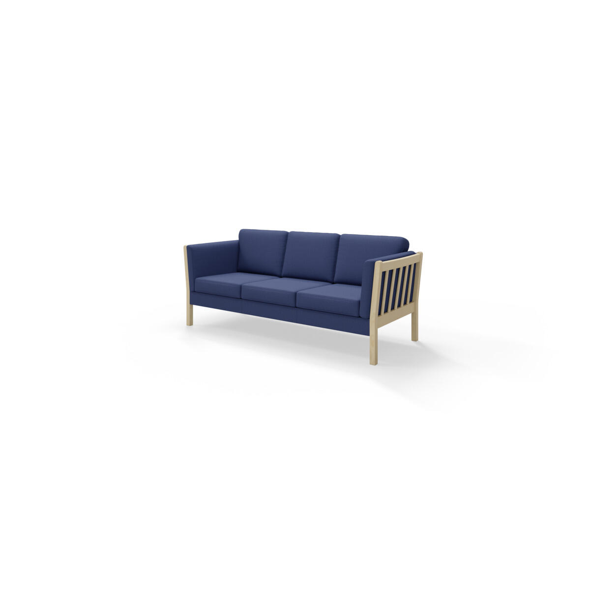 Mitat: 200x82 cm. Istuinkorkeus 44 cm, istuinsyvyys 53 cm. Selkänojan kokonaiskorkeus 83 cm. Tyynyissä vaahtomuovitäyte ja rungossa nozag-jousitus. Värivaihtoehtoina sininen, harmaa ja punainen. Irrotettavat päälliset pestävissä 30 °C:ssa. Jalat mustaksi maalattua koivua.