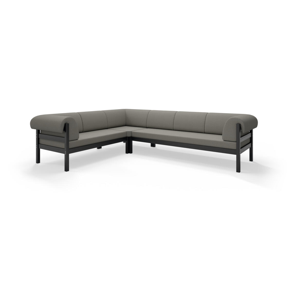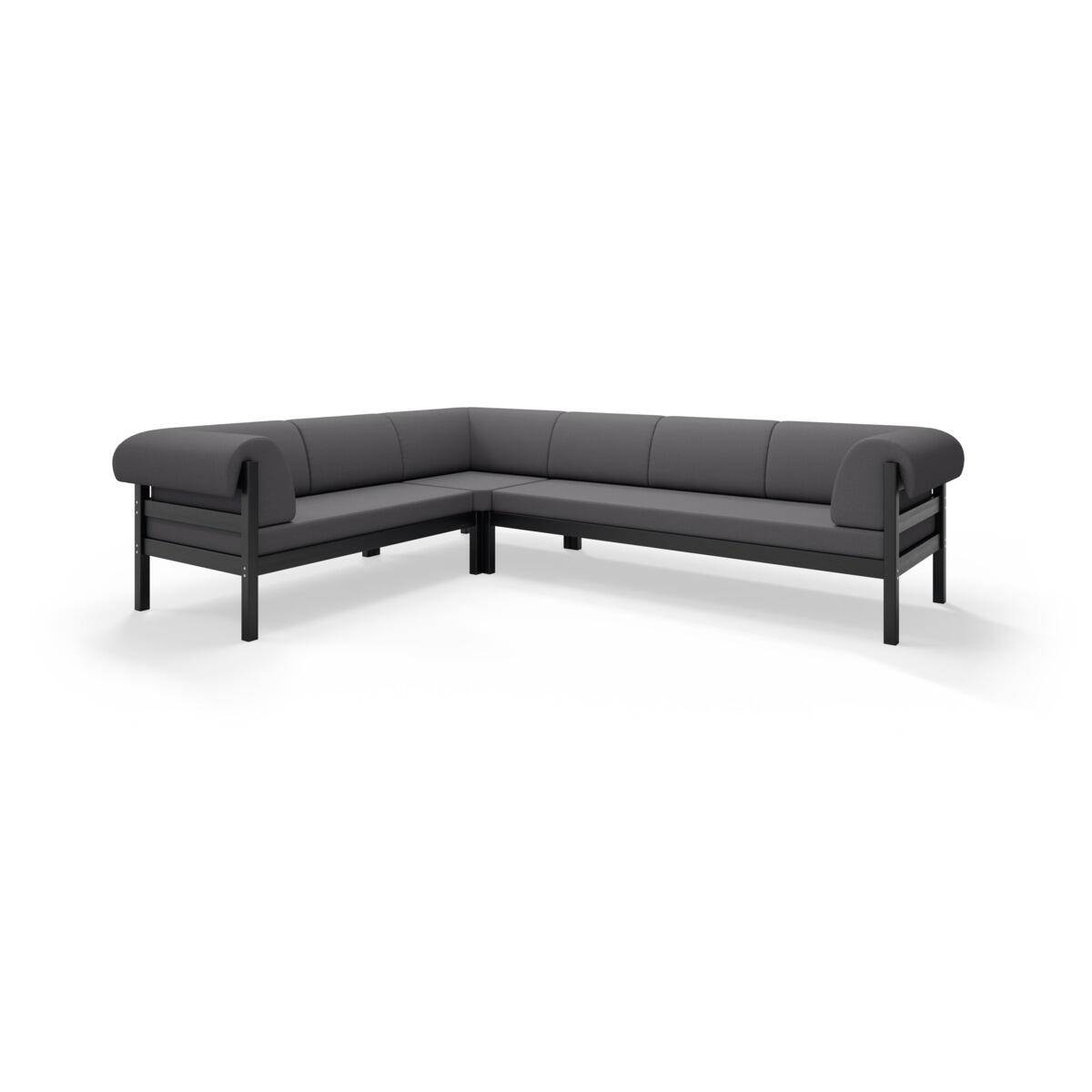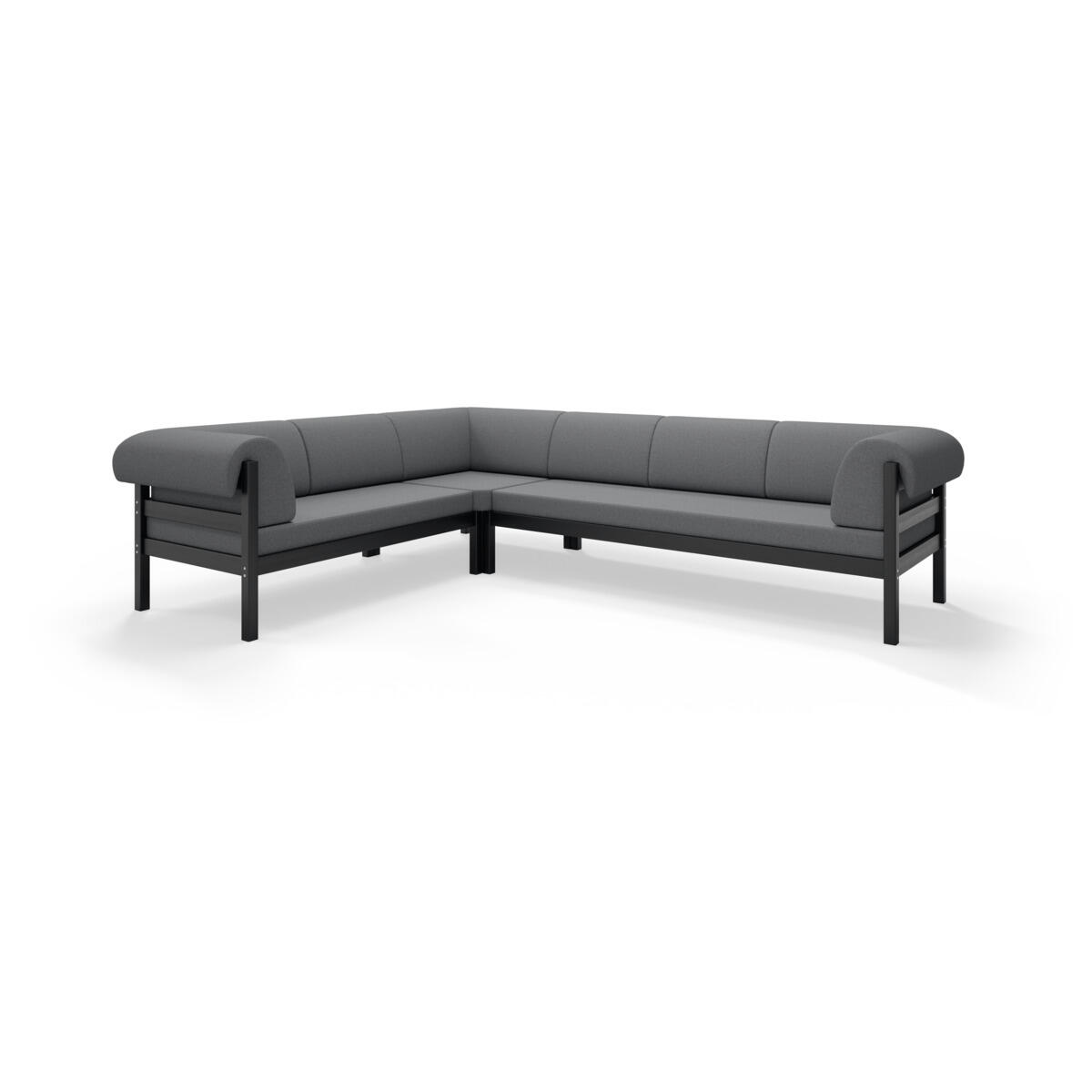 Sohva, jossa on moderni, tyylikäs ja suoralinjainen muotoilu. Selkänojan, istuimen ja käsinojan välinen rako (3 cm) helpottaa puhtaanapitoa. Puurunko ja vaahtomuovipehmuste. Jalat jauhemaalattua metallia.