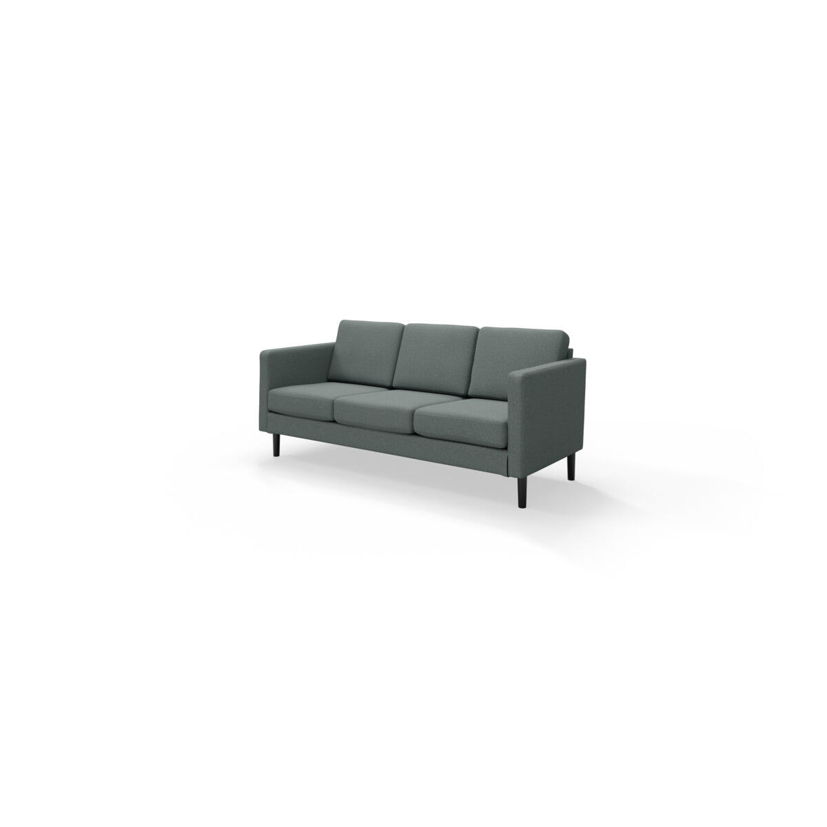 Mitat: 200x82 cm. Istuinkorkeus 44 cm, istuinsyvyys 53 cm. Selkänojan kokonaiskorkeus 83 cm. Tyynyissä vaahtomuovitäyte ja rungossa nozag-jousitus. Irrotettavat päälliset pestävissä 30 °C:ssa. Jalat mustaksi maalattua koivua.