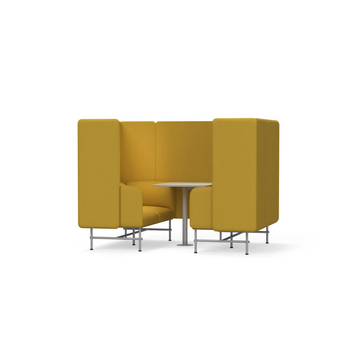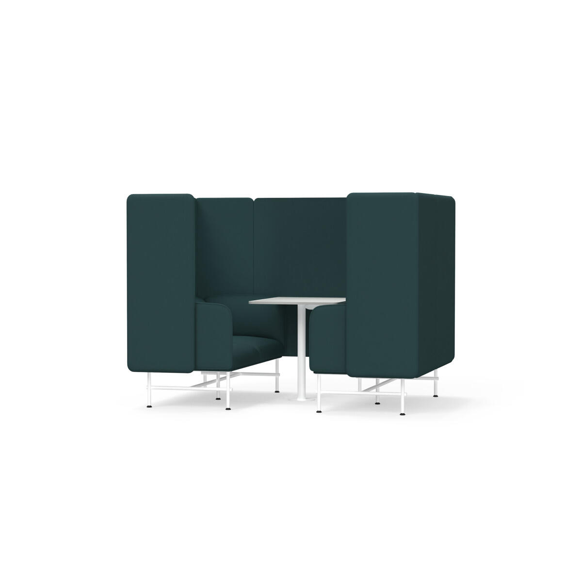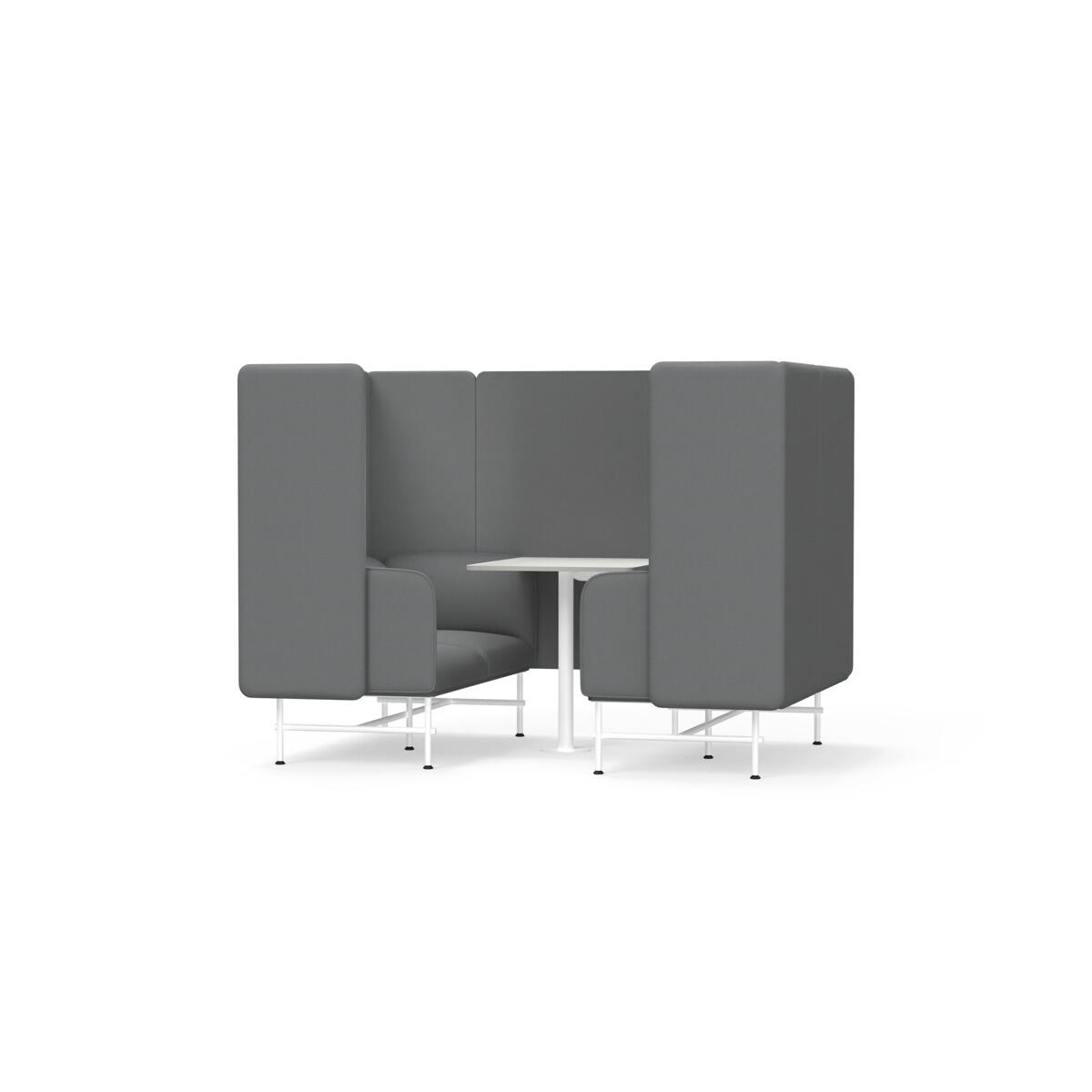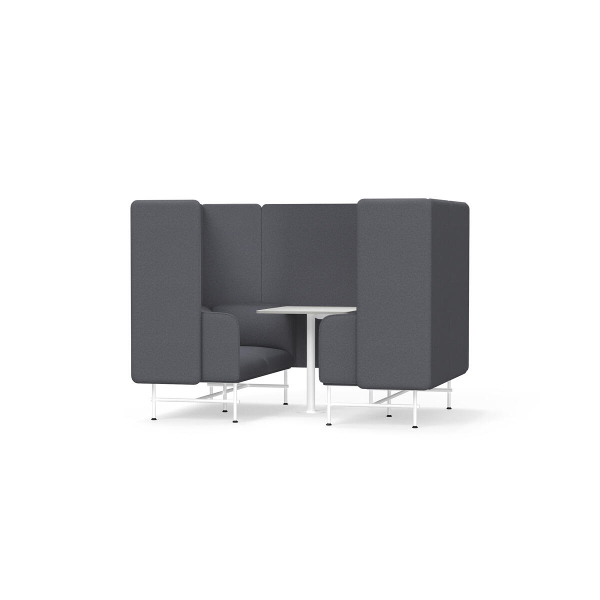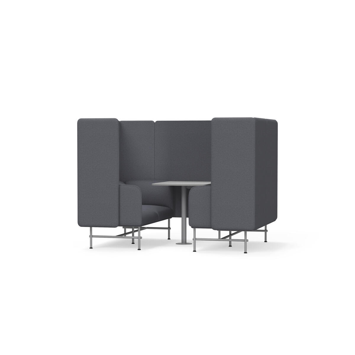 Nebula on minimalistinen tuoteperhe, joka yhdistää selkeän muotoilun ja käytännöllisyyden. Sarjaa luonnehtivat pehmeät linjat, tasapainoiset muodot ja harkitut yksityiskohdat. Korkeat seinämät vaimentavat ääntä ja rajaavat tilaa, tuoden mukavasti yksityisyyttä muun tilan keskellä. Sopii hyvin ryhmätyöskentelyyn tai rauhalliseen hetkeen. Kestävä puurunko ja mukava kylmävaahtopehmuste, joka säilyttää muotonsa aktiivisessakin käytössä. Metallijalat ovat pulverimaalatut, mikä lisää pitkäikäisyyttä ja helppohoitoisuutta. Pöydän kannessa tammilaminaattipinta, pöydän mitat 125x64x74 cm.