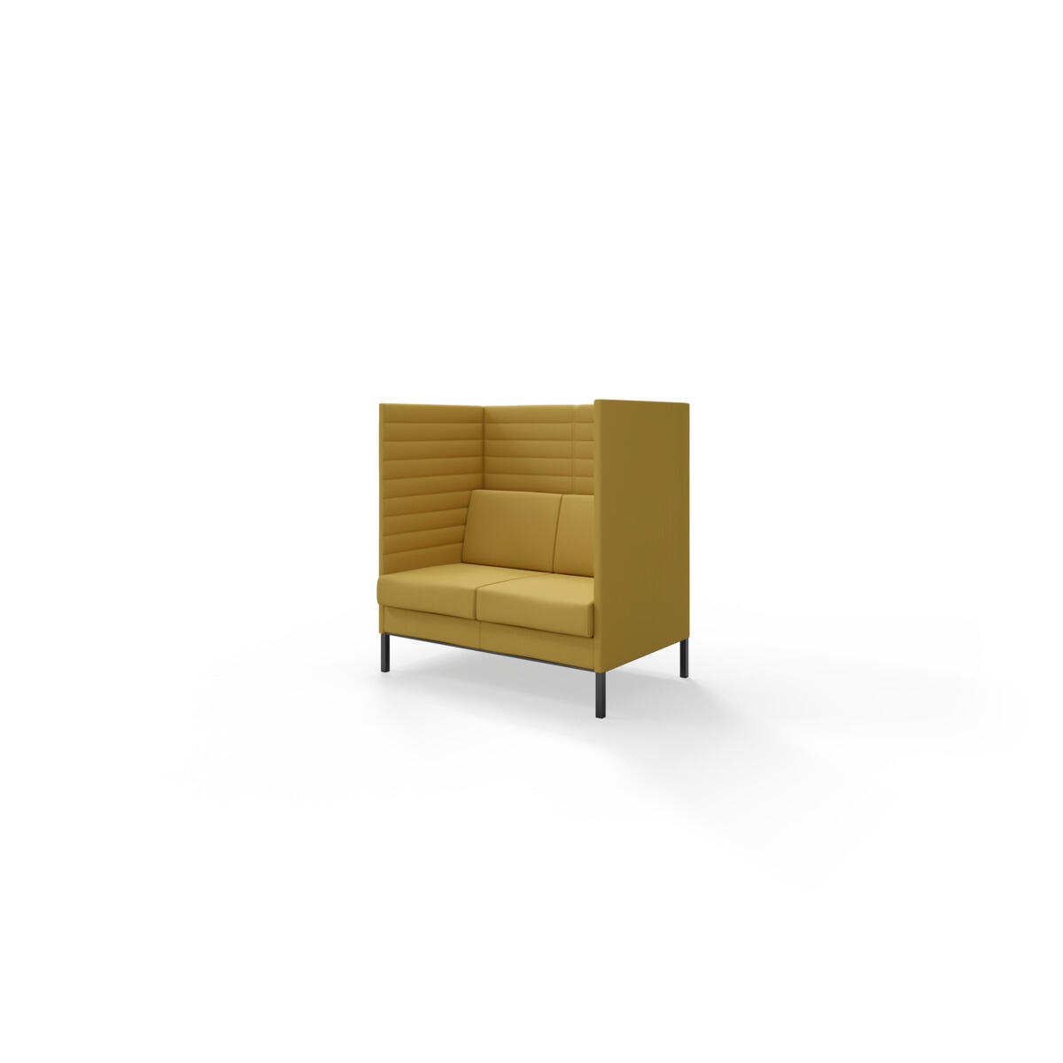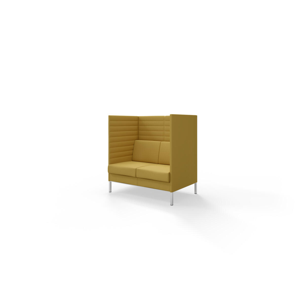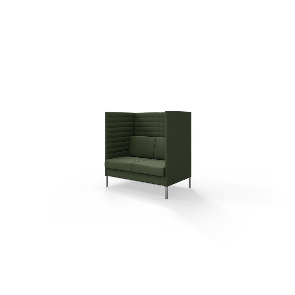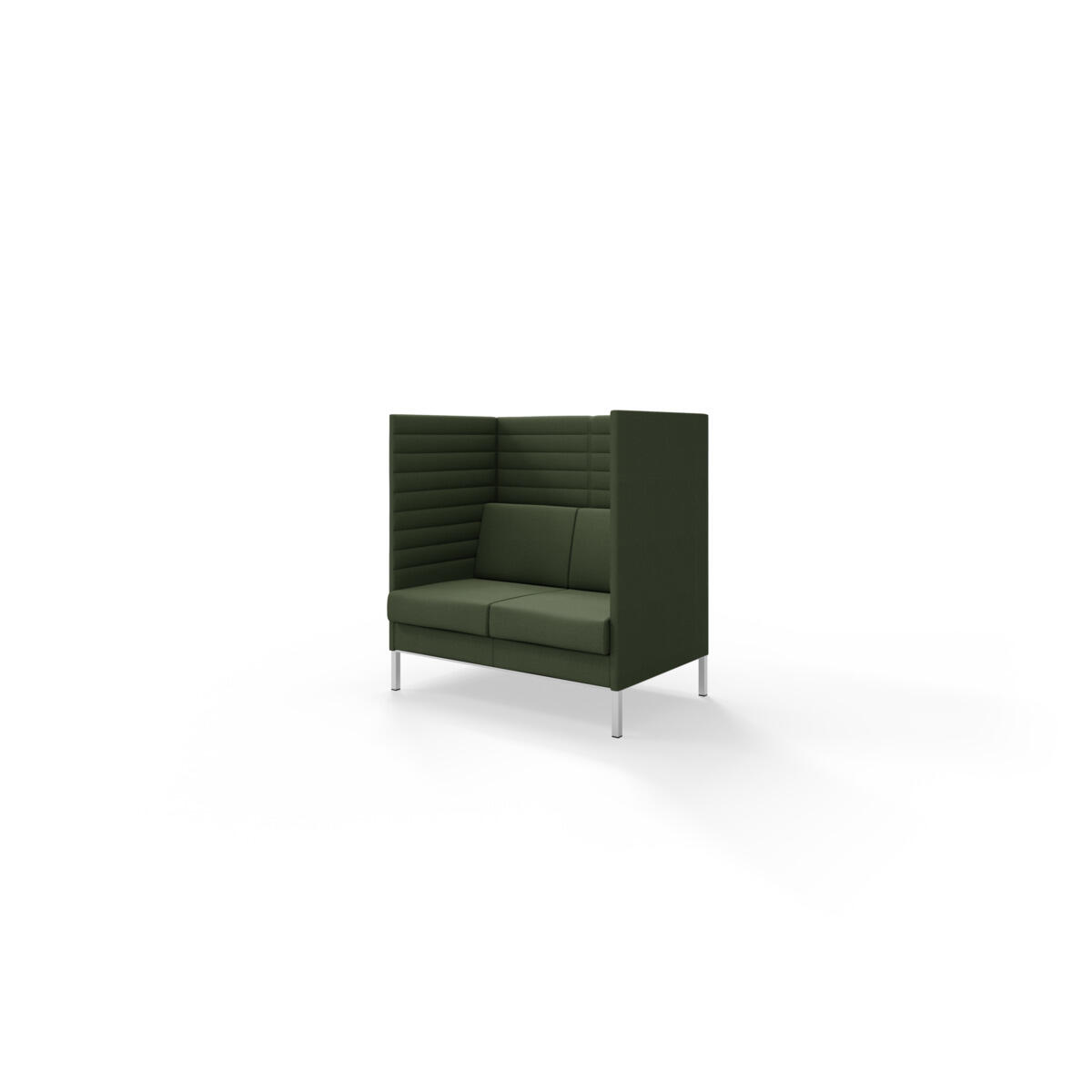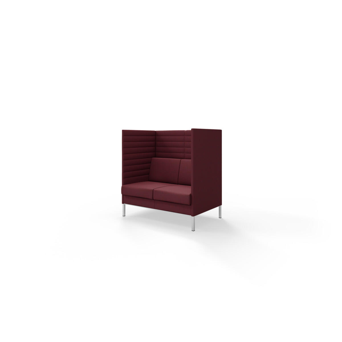 Korkea selkänoja ja korkeat päädyt eristävät ja vaimentavat ääntä tehokkaasti. Puurunko nozag-jousituksella ja vaahtomuovipehmusteella. Jauhemaalattu metallirunko. Irrotettava päällinen selkä- ja istuintyynyssä. Korkeiden sivujen ja taustan väri valittavissa. Selkänojatyyny ja istuintyyny aina harmaana valitussa kankaassa.