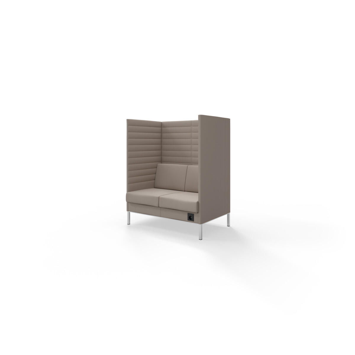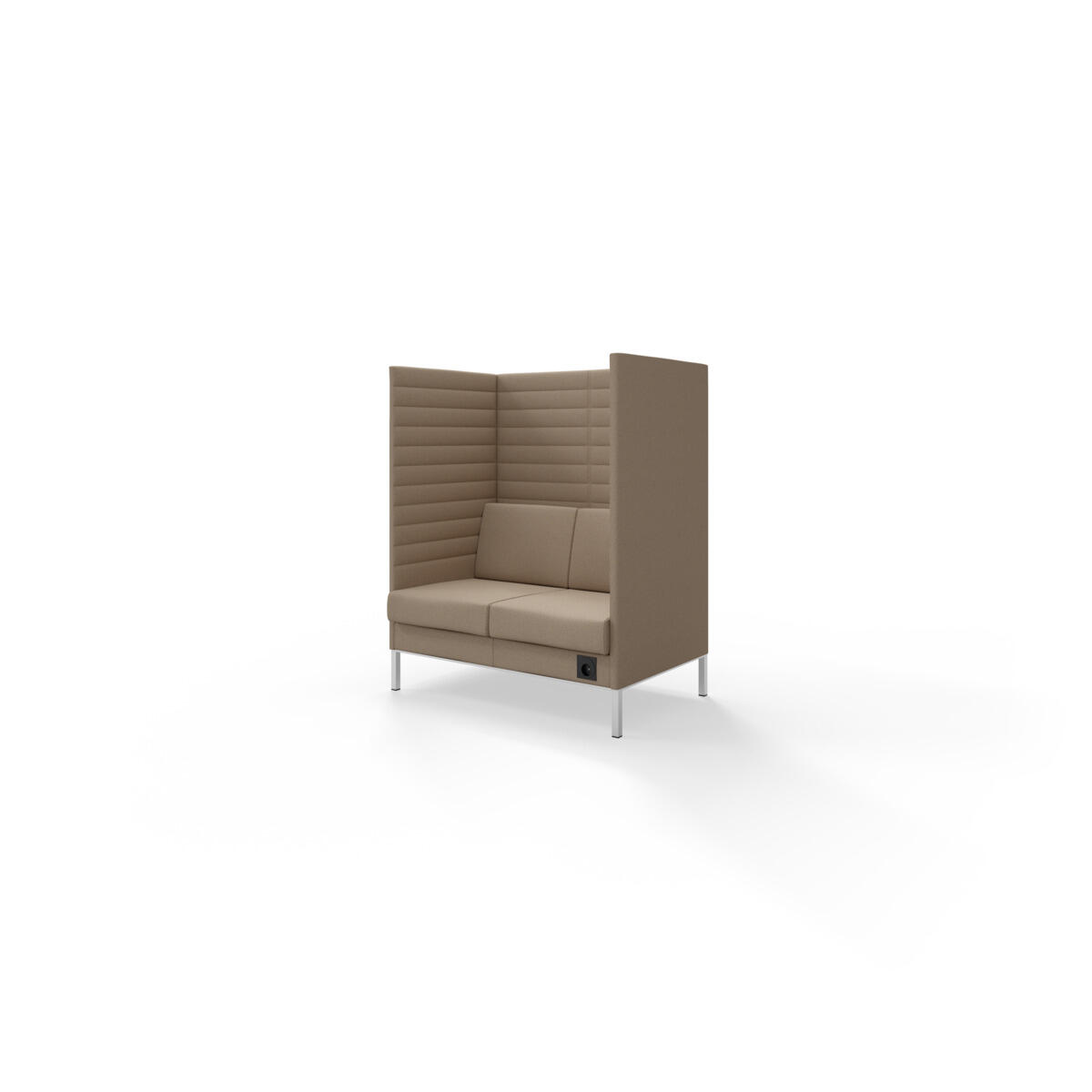 Korkea selkänoja ja korkeat päädyt eristävät ja vaimentavat ääntä tehokkaasti. Puurunko nozag-jousituksella ja vaahtomuovipehmusteella. Jauhemaalattu metallirunko. Sähköpistoke sisältyy. Irrotettava päällinen selkä- ja istuintyynyssä. Korkeiden sivujen ja taustan väri valittavissa. Selkänojatyyny ja istuintyyny aina harmaana valitussa kankaassa.