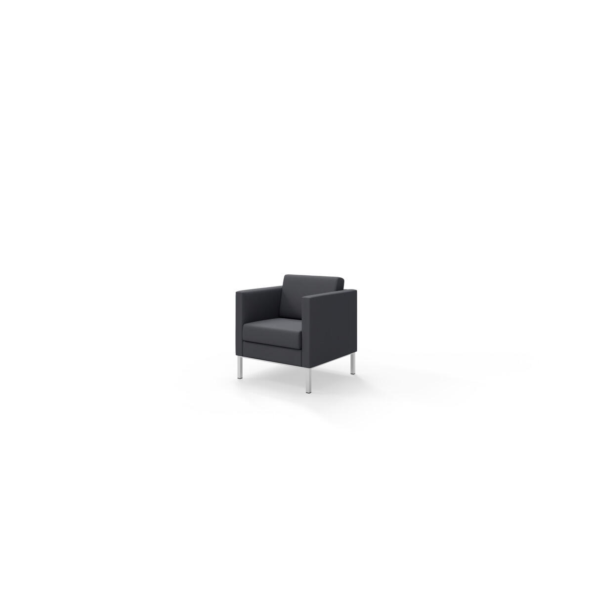 Tyylikäs nojatuoli, joka pelkistetyn muotokielensä ansiosta sopii useimpiin ympäristöihin. Suorat reunat mahdollistavat useiden tuolien sijoittamisen tiiviisti vierekkäin, esimerkiksi selkä selkää vasten. Puurunko nozag-jousituksella ja vaahtomuovipehmusteella. Jauhemaalattu metallirunko.