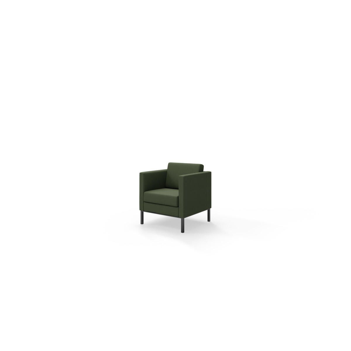 Moderni ja ajaton nojatuoli, joka pelkistetyn muotokielensä ansiosta sopii useimpiin ympäristöihin. Suorat reunat mahdollistavat useiden tuolien sijoittamisesta tiiviisti vierekkäin, esimerkiksi selkä selkää vasten. Puurunko nozag-jousituksella ja vaahtomuovipehmusteella. Jauhemaalattu metallirunko. Irrotettava päällinen selkä- ja istuintyynyissä.