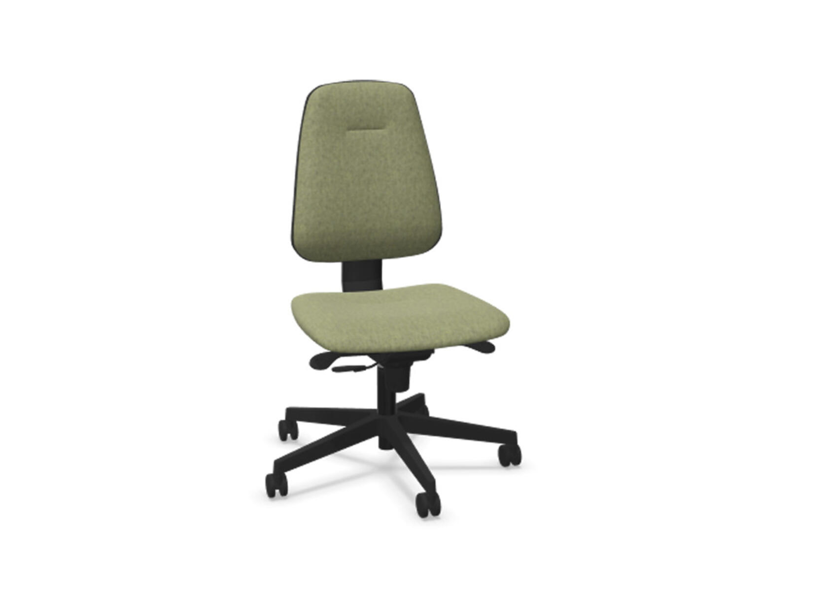 Ergonominen toimistotuoli, jossa on puoliverhoiltu keskikorkea selkänoja ja synkronimekanismi aktiiviseen työskentelyasentoon. Selkänojan kallistuskulma 20° ja istuinosan 11°, synkronoitu liike. Selkänoja lukittavissa viiteen asentoon, vastus säädettävissä säätönupilla. Selkänojan korkeussäätö 75 mm, 13 lukitusasentoa. Anti-Shock-toiminto estää selkänojan äkillisen palautumisen. Valittavissa musta polyamidiristikko tai kiillotettu alumiiniristikko. Itsejarruttavat pyörät pehmeille tai koville lattioille. Käsinojat (2D, 3D tai 4D) myydään erikseen.